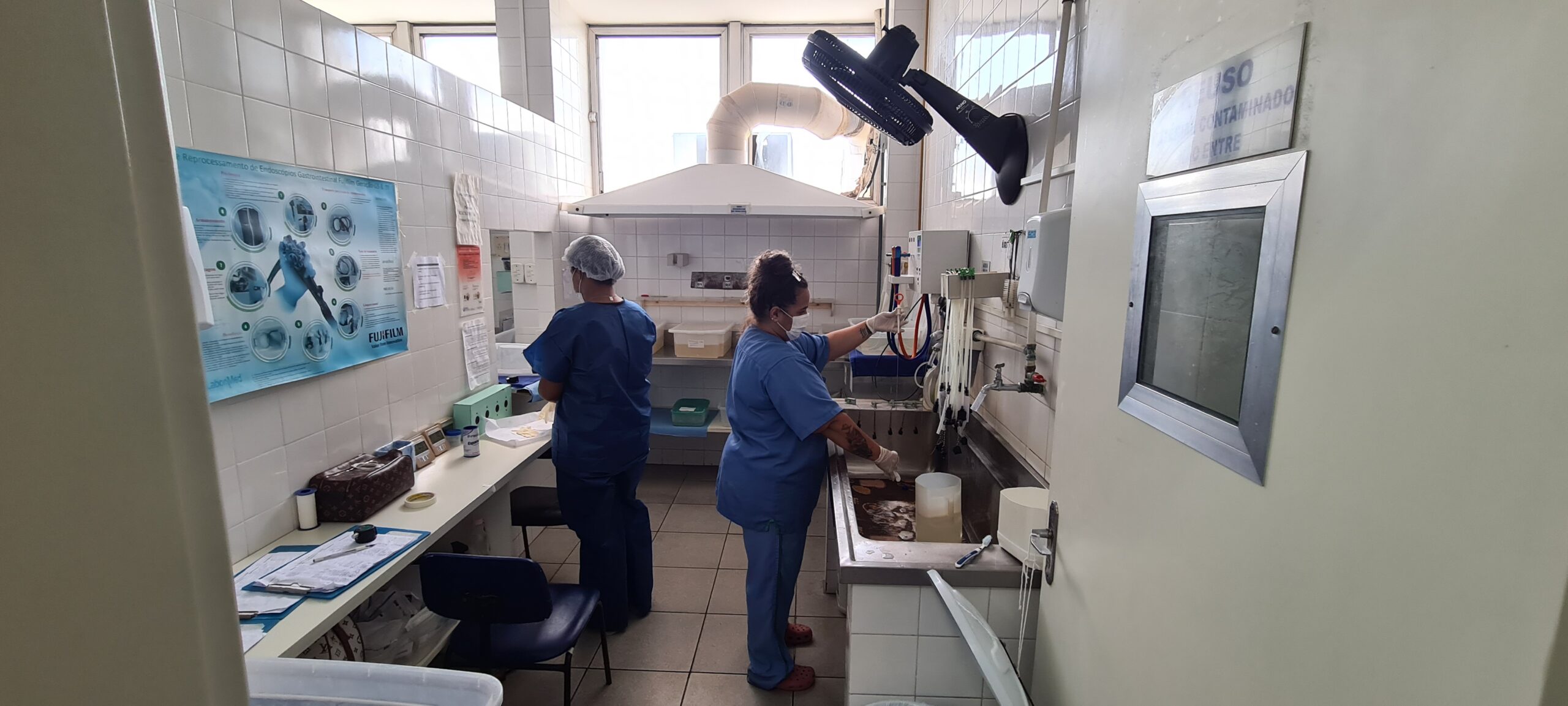 Outra melhoria foi a instalação de fibras óticas, que ligam as salas de atendimento aos pacientes ao auditório reformado. Assim, os alunos conseguem acompanhar os exames endoscópicos e os procedimentos em tempo real. E como ressalta Prof. Dr. Homero: “é uma forma de evitar a exposição do paciente sem prejudicar a qualidade do ensino.”