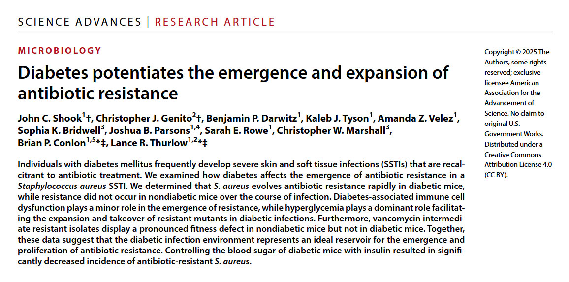 • ARTIGO: Diabetes potentiates the emergence and expansion of antibiotic resistance