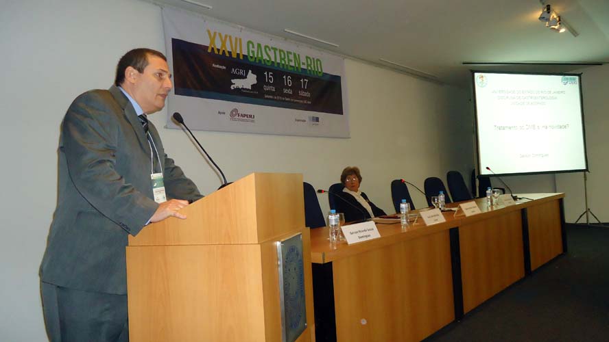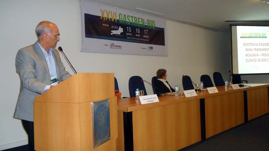 Terminadas as conferências da manhã foi a vez da mesa-redonda sobre Distúrbios Motores do Esôfago, que teve como moderadora a Dra. Eponina Maria Lemme. Nela, falaram os Drs. Luiz João Abrahão Jr. (Diagnóstico dos DME´s. O que mudou com a manometria de alta resolução), Gerson Ricardo de Souza Domingues (Tratamento dos DME´s – Há novidade?) e Antonio Carlos Coelho Conrado, convidado de Pernambuco, (POEM´S – indicação, técnica e resultados).