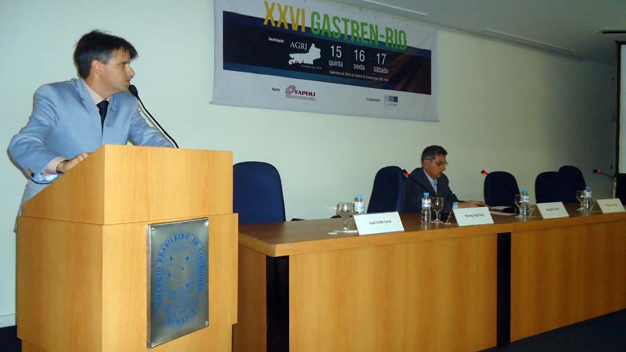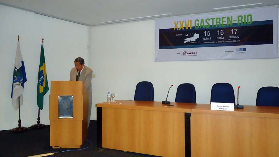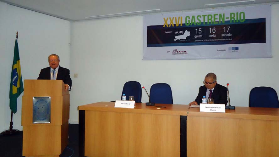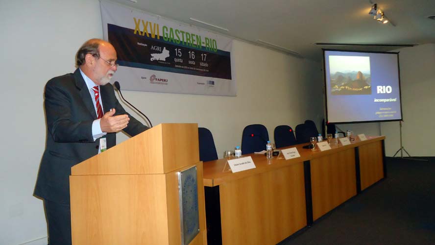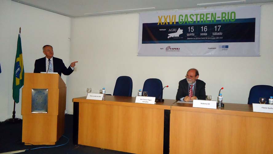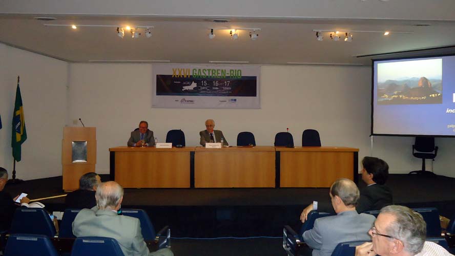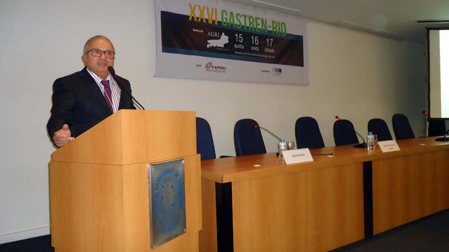 O XXVI Gastren-Rio teve continuidade nesta sexta-feira, dia 16, no auditório do Colégio Brasileiro de Cirurgiões, no Humaitá. As atividades começaram com o café da manhã Aché, simpósio satélite que contou com palestra sobre Atualização em H.Pylori: há necessidade de novos esquemas? Qual é o papel dos probióticos no auxílio do tratamento?, com o Dr. Tomás Navarro Rodrigues, que foi apresentado pelo Dr. Javier Morelli, vice-presidente da AGRJ. Após a apresentação, houve debate sobre o tema com os presentes.