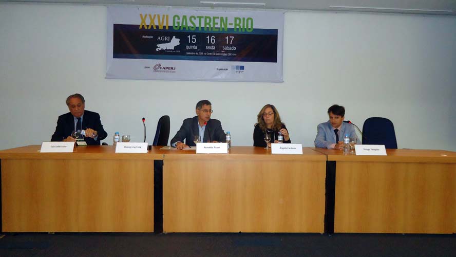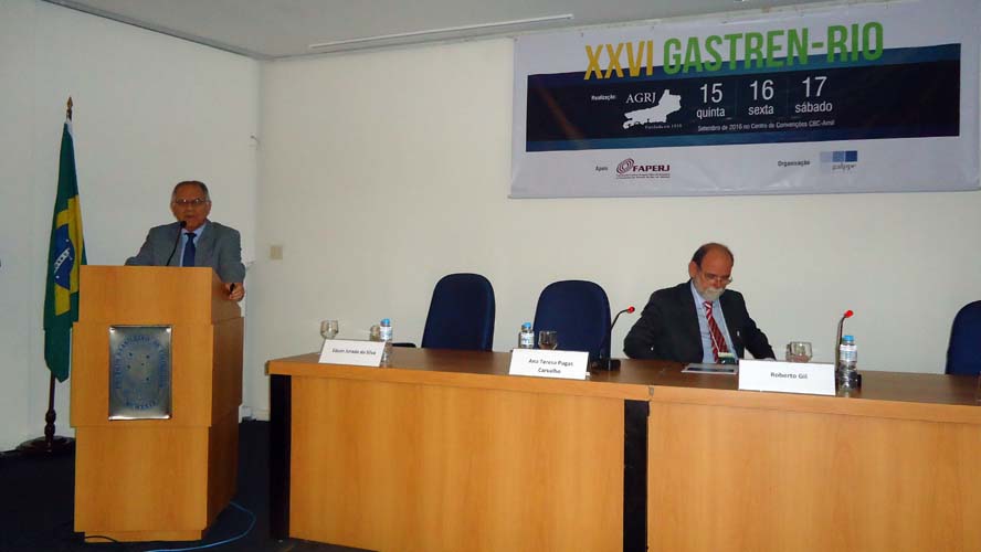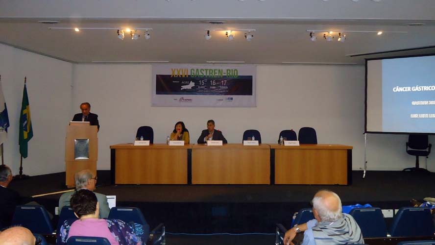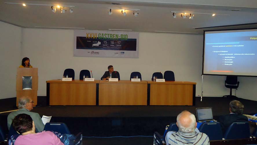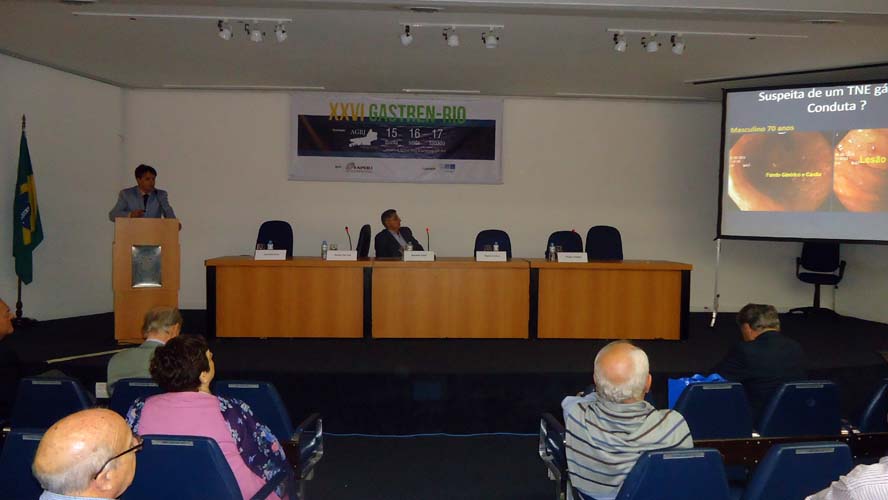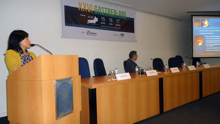 Finalizando o dia, aconteceu mesa-redonda da parceria entre AGRJ e SOBED-RJ, que teve como moderador o Dr. Ronaldo Taam e contou com palestras sobre Polipos Gástricos, com a Dra. Huang Ling Fang, Câncer Gástrico Precoce- Diagnóstico, com o Dr. Luiz Leite Luna, Tumor Carcinóide Gástrico, com o Dr. Thiago Tatagiba, e Gastrites e Metaplasias – Definição e Classificação, com a Dra. Ângela Carvalho. Após as apresentações houve amplo debate sobre os assuntos abordados.
