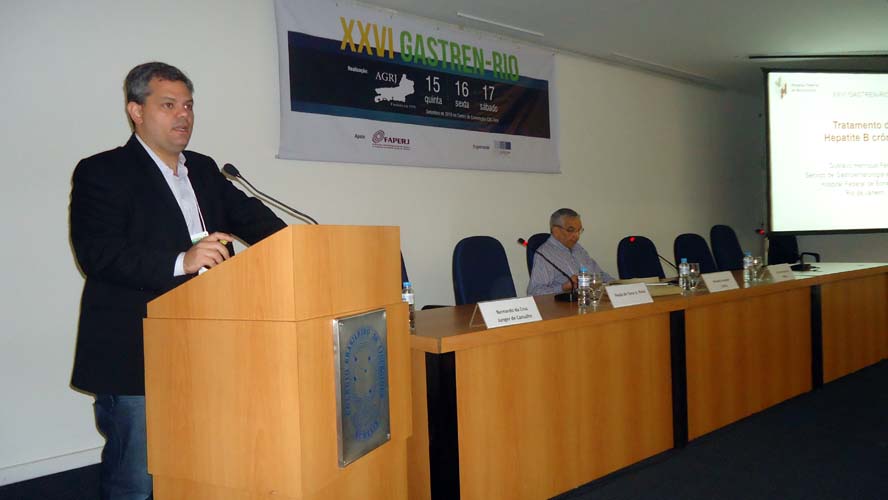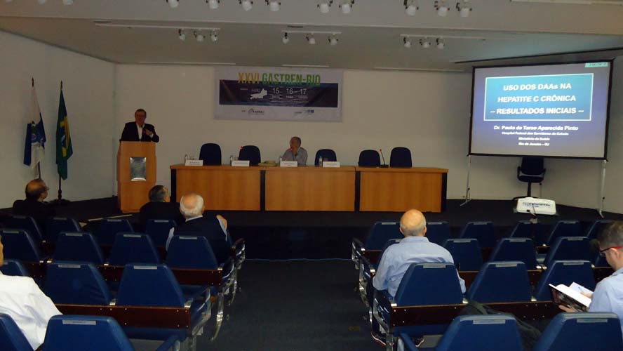 Neste sábado, o evento teve início com a mesa-redonda sobre Hepatites Virais com moderação do Dr. Eduardo Joaquim Castro. Ocorreram apresentações sobre Uso dos DAAs na Hepatite Crônica C – Resultados iniciais, com o Dr. Paulo de Tarso A. Pinto, Tratamento da Hepatite crônica B, com o Dr. Gustavo Henrique Pereira, e Manifestações sistêmicas da infecção pelo HCV, com o Dr. Bernardo da Cruz Junger de Carvalho. Finalizando a mesa-redonda os palestrantes e o moderador debateram os temas com os congressistas por cerca de 20 minutos.