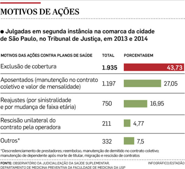 Planos de saúde estão em terceiro lugar na lista de conflitos mais comuns analisados na Justiça Paulista. Em primeiro lugar estão os contratos e em segundo, os seguros em geral, aí incluído o contra Danos Pessoais Causados por Veículos Automotores de Via Terrestre (DPVAT).