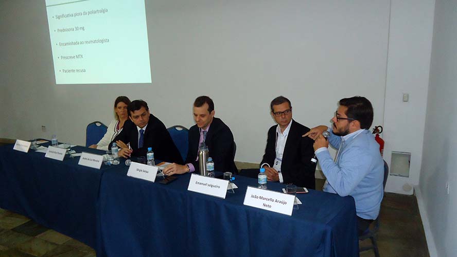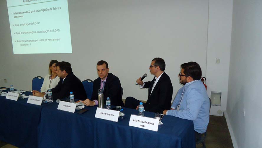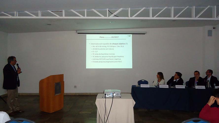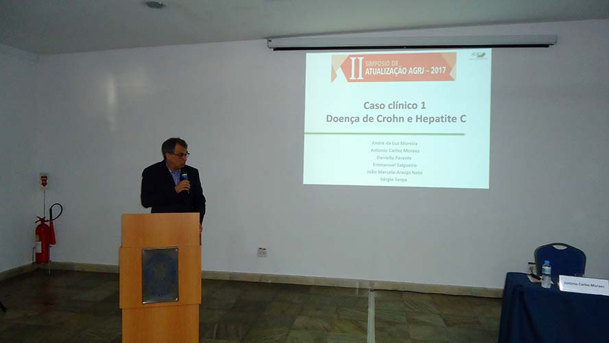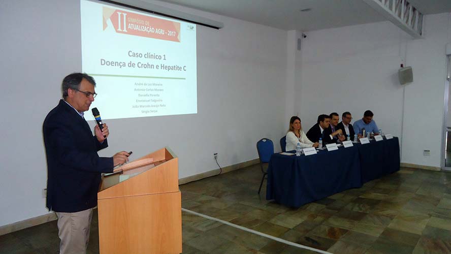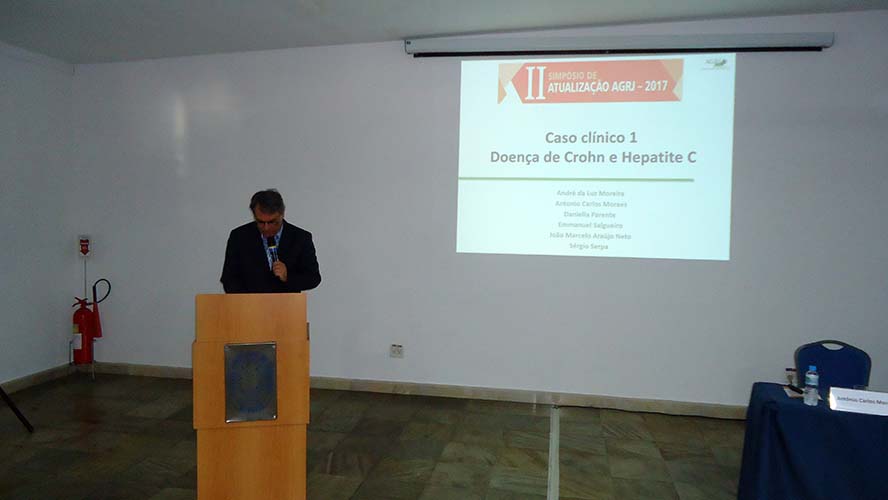 Abrindo as atividades científicas, o Dr. Antônio Carlos Moraes, que junto com o Dr. João Marcello Araújo Neto coordenou o simpósio, apresentou caso clínico sobre Doença de Crohn e VHC que foi debatido com Dr. André da Luz Moreira, Dra. Daniella Braz Parente, Dr. Sérgio Serpa, Dr. Emanuel Salgueiro e o Dr. João Marcello Neto.