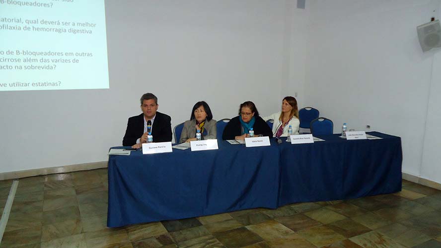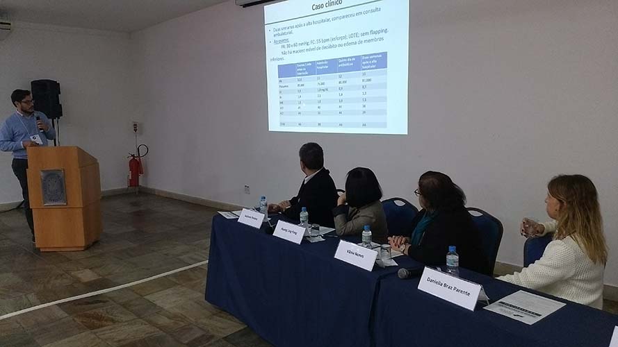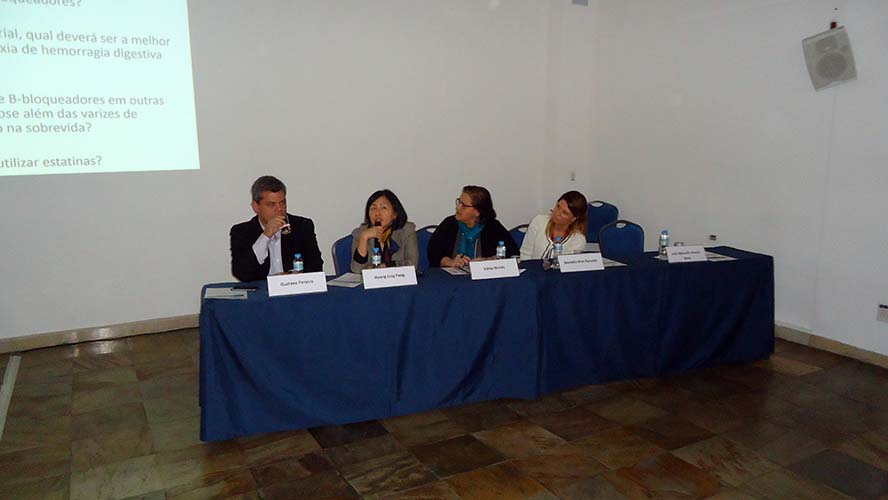 Finalizando o evento, houve debate de caso clínico sobre Complicações de cirrose hepáticas, que teve moderação do Dr. João Marcello Neto e como debatedores o Dr. Gustavo Pereira e as Dras. Huang Ling Fang, Daniella Braz Parente e Vânia Nunes.