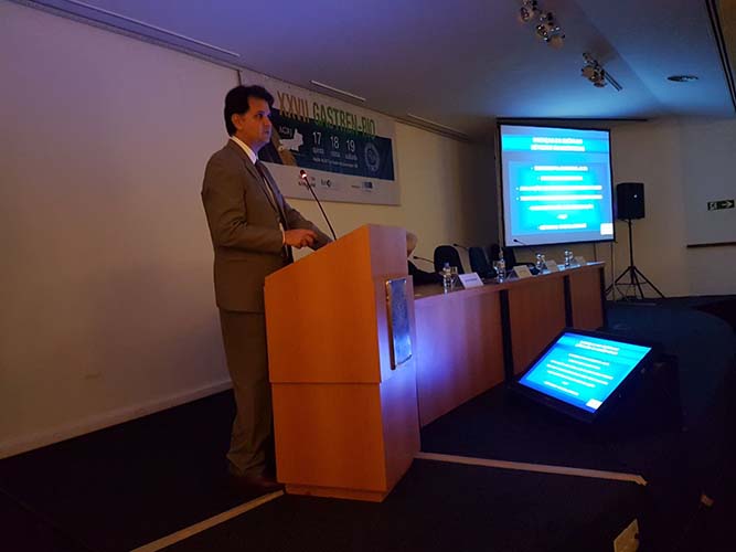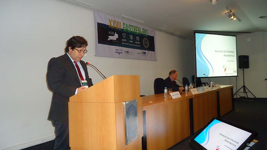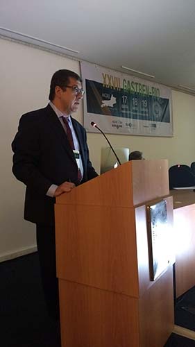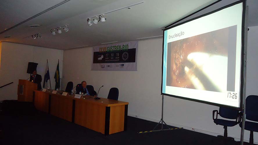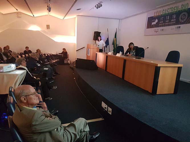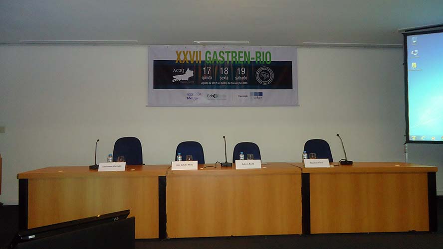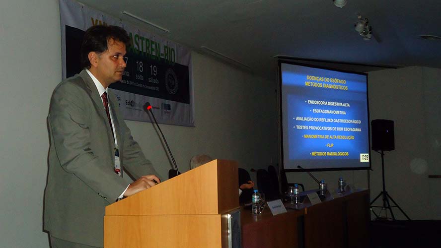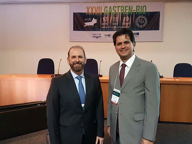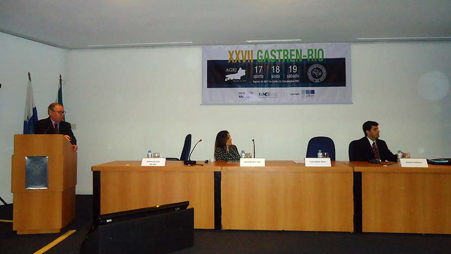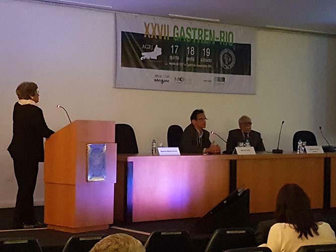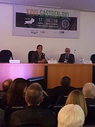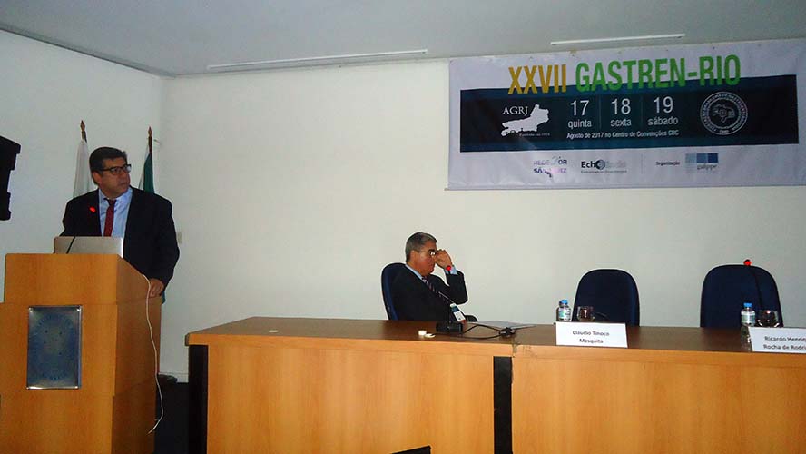 Na sequência, o tema Disfagia foi abordado em mesa redonda, com a moderação do Dr. José Augusto Messias. O palestrante Dr. Richard Gurski falou sobre disfagia pós-cirurgia anti-refluxo e como manejar. Já o Dr. Gerson Domingues discutiu a disfagia na esofagite eosinofílica. Para finalizar, o Dr. Luiz João Abrahão Júnior apontou os avanços na investigação da disfagia e trouxe alguns resultados obtidos no Hospital da UFRJ, em que atua. Ao fim da mesa redonda, todas as perguntas do auditório foram debatidas. Os dois primeiros palestrantes vieram de Porto Alegre e Belo Horizonte, respectivamente, para participarem do XXVII Gastren-Rio.