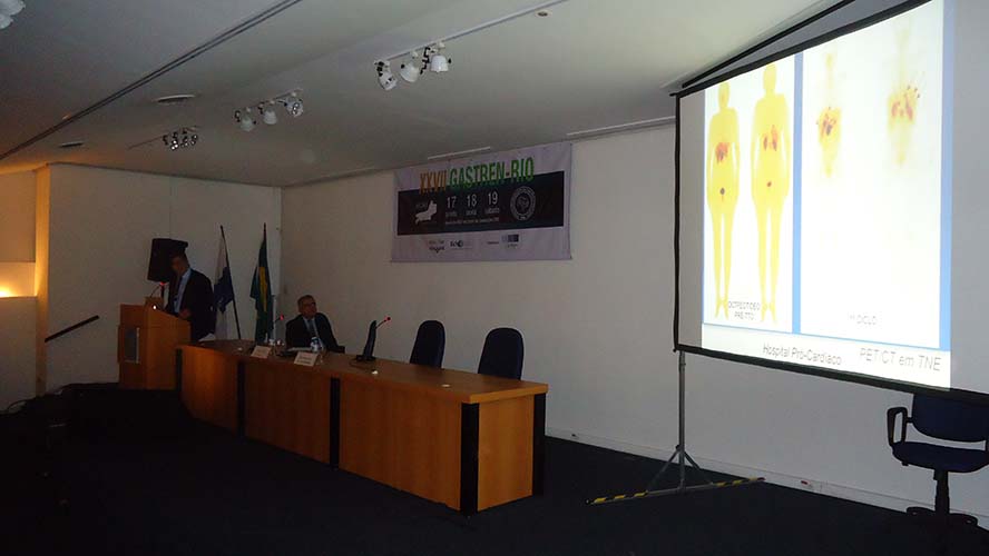 Na sequência, foi a vez da conferência A Medicina Nuclear – Diagnóstica e terapêutica nos tumores neuroendócrinos, que foi presidida pelo Dr. Ricardo Henrique Rocha de Rodrigues e ministrada pelo Dr. Claudio Tinoco.