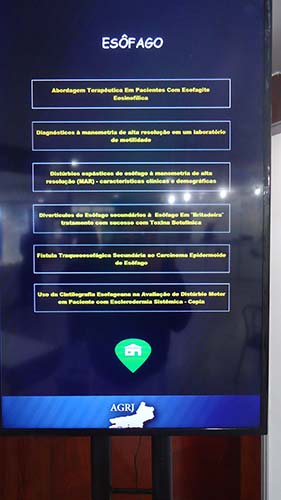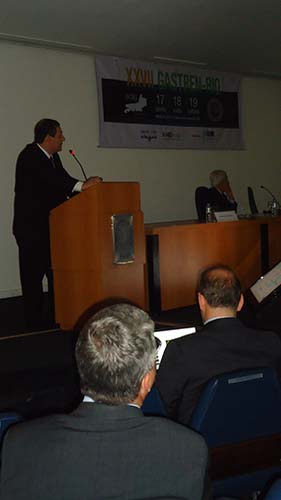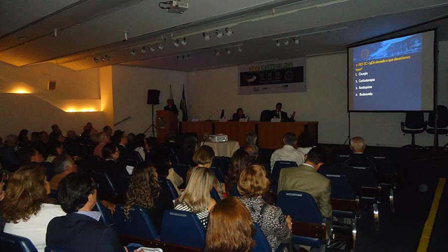 Após o gastrolanche, oferecido no 3º andar do Centro de Convenções, foi realizada a última mesa redonda do dia. O tema escolhido foi Doenças do Esôfago, apresentado a partir da análise de dois casos clínicos. O primeiro reuniu a opinião dos especialistas Dr. Alexandre Pinto Cardoso e Dr. Marcos Sarvat, conduzidos pela Dra. Eponina Lemme. No segundo caso, a Dra. Beatriz Biccas, conduziu o debate com a moderadora, Dra. Ângela Alvariz.