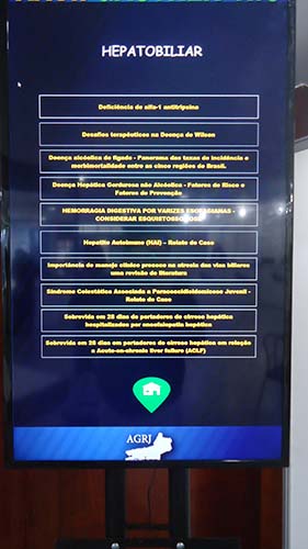 Após um breve intervalo para o café, foi a vez da mesa redonda: Doenças do Pâncreas – discussão de casos clínicos que contou com moderação do Dr. José Galvão-Alves. O primeiro caso apresentado teve como debatedores a Dra. Olívia Barbieri Luna e o Dr. Antônio Siciliano. Já o segundo caso contou com a participação da Dra. Andrea de Faria Mendes e do Dr. Antônio Siciliano. A todo momento houve interação com a plateia a partir de perguntas que eram feitas e, através dos dispositivos multimídia distribuídos, os presentes podiam selecionar as respostas que achavam as corretas.