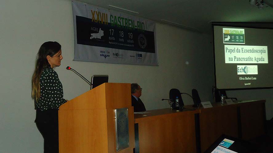 Ao oferecer um lunch box a todos os presentes, a Clinica EchoEndo abriu a programação da tarde com o Simpósio Satélite, que trouxe as palestras do Dr. José Galvão Alves (Pancreatite Aguda – Conceito) e da Dra. Olivia Barbieri Luna (Papel da Ecoendoscopia na Pancreatite Aguda). Ambos interagiram respondendo perguntas da plateia. Dra. Olivia Luna, que foi aluna de Dr. José Galvão (PUC-Rio) é responsável técnica da Clinica EchoEndo.