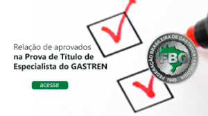 A Comissão de Título de Especialista da Federação Brasileira de Gastroenterologia informa, conforme edital, os aprovados da prova de Título de Especialista em Gastroenterologia realizada no dia 19 de agosto de 2017 na cidade do Rio de Janeiro, durante o XXVII GASTREN.