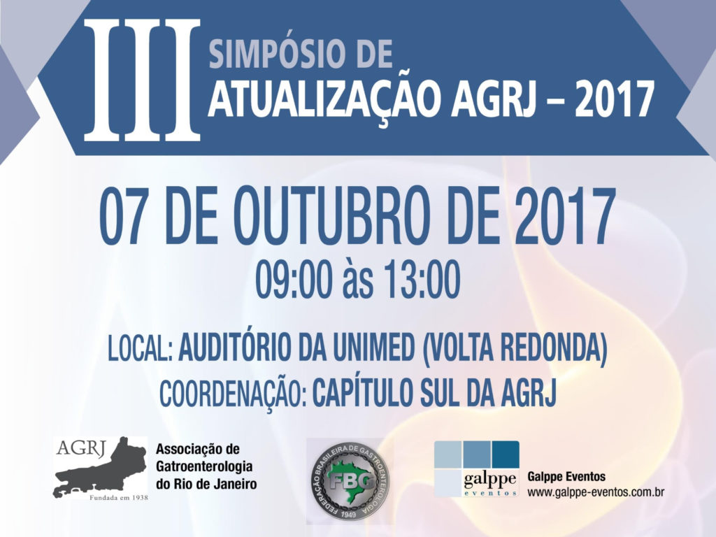 O III Simpósio de Atualização da AGRJ será realizado no dia 7 de outubro (sábado), em Volta Redonda.