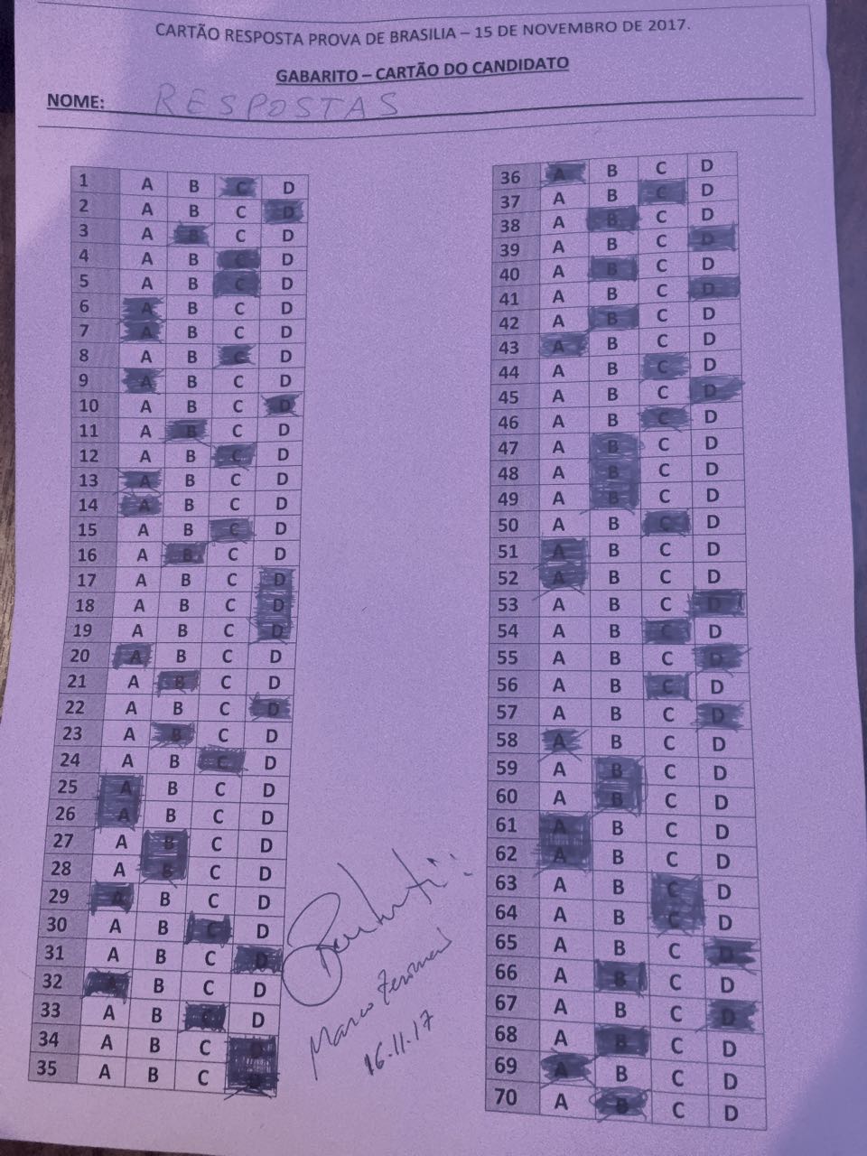 Confira o gabarito oficial da avaliação abaixo: