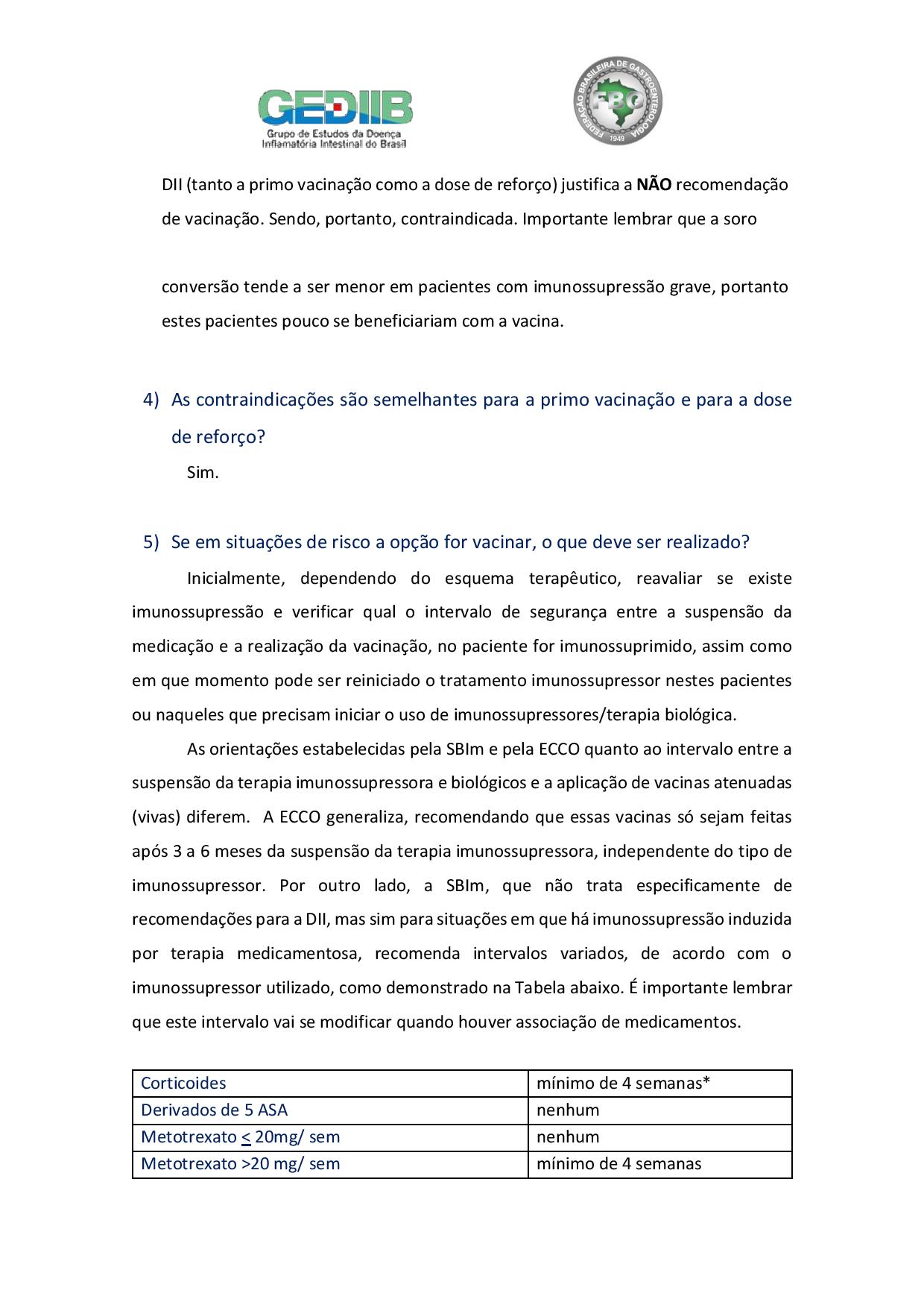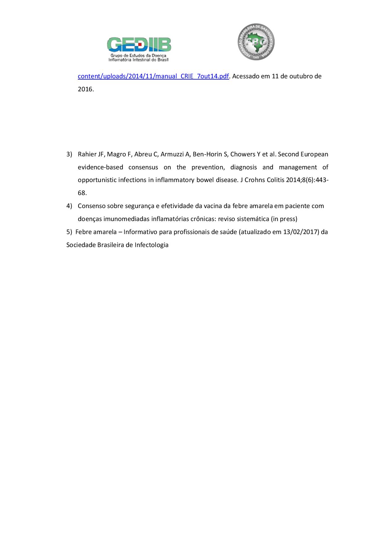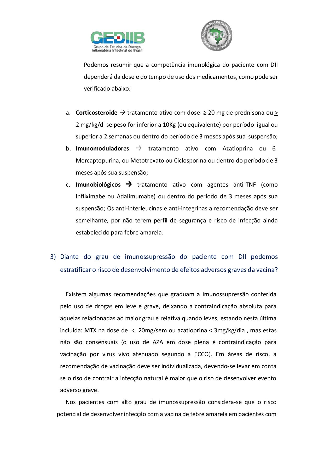 Nota de esclarecimento sobre a vacinação de Febre Amarela em pacientes de DII