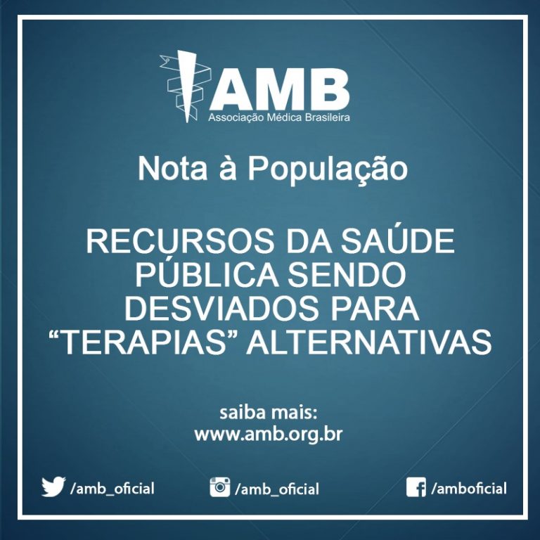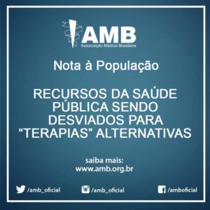 Assim a AMB considera um desrespeito aos brasileiros o uso de valores para tais práticas e, ainda, a destinação de mais recursos para a realização de grande evento internacional – 1º. Congresso Internacional de Práticas Integrativas para Saúde Pública – promovido pelo próprio MS.