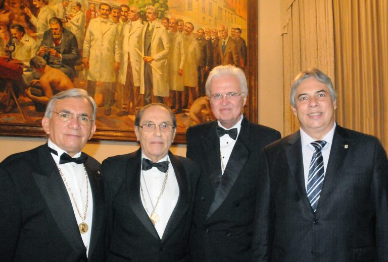 Na foto Lincoln Lopes Ferreira com os acadêmicos Natalino Salgado Filho, Mario Corrêa Lima e Arno von Ristow, vice-presidente da região Sudeste da AMB.