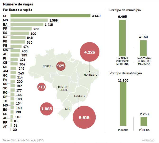 Para Jadete Barbosa Lampert, coordenadora da Comissão de Avaliação das Escolas de Saúde da Associação Brasileira de Educação Médica (Abem), as vagas acabam concentradas em áreas que já tinham cursos de Medicina por falta de estrutura de outras localidades. “O aumento de vagas extrapolou o planejamento. Não tinha como abrir esse número de vagas em locais sem estrutura de atendimento médico, sem um corpo docente qualificado”, diz ela, que relata ainda preocupação com a qualidade das faculdades abertas. “Com certeza tem muitas falhas”, afirma.