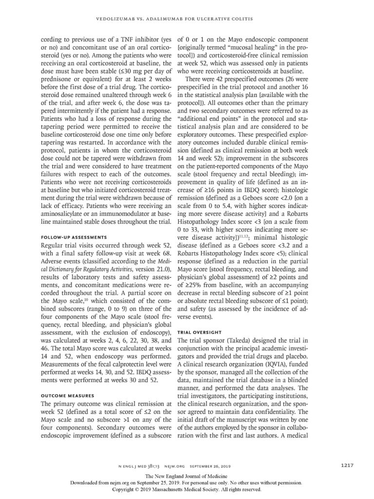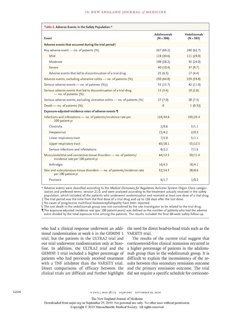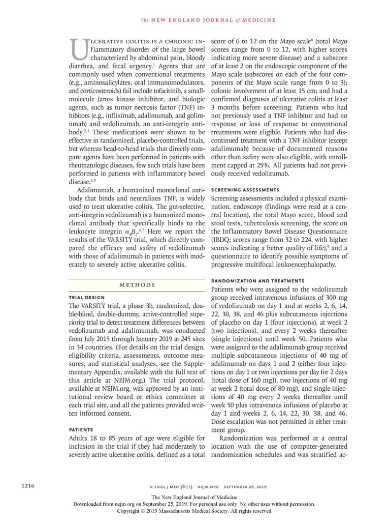 Vedolizumab versus Adalimumab for Moderate-to-Severe Ulcerative Colitis