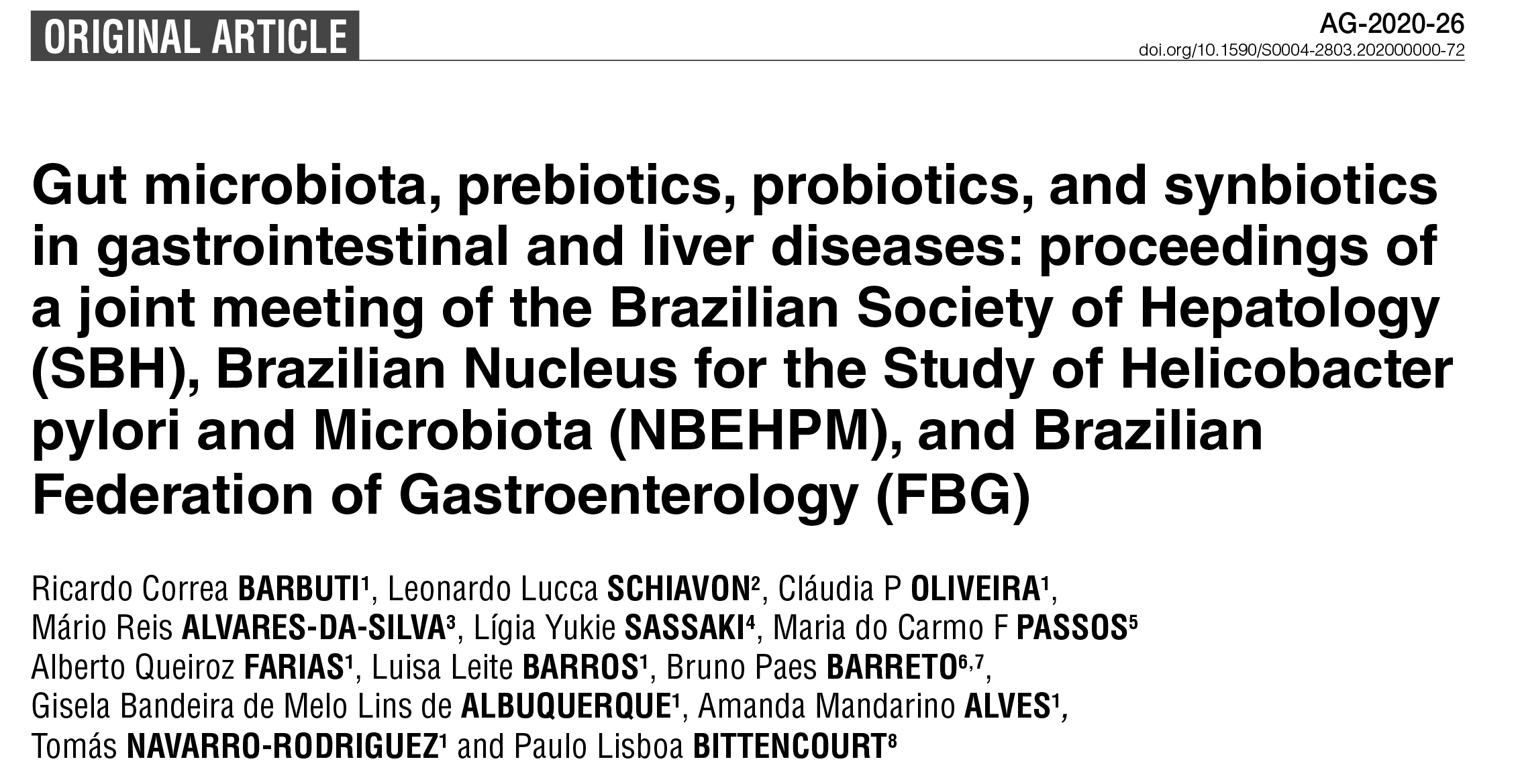 ARTIGO: Gut microbiota, prebiotics, probiotics, and synbiotics in gastrointestinal and liver diseases: proceedings of a joint meeting of the Brazilian Society of Hepatology (SBH), Brazilian Nucleus for the Study of Helicobacter pylori and Microbiota (NBEHPM), and Brazilian Federation of Gastroenterology (FBG)