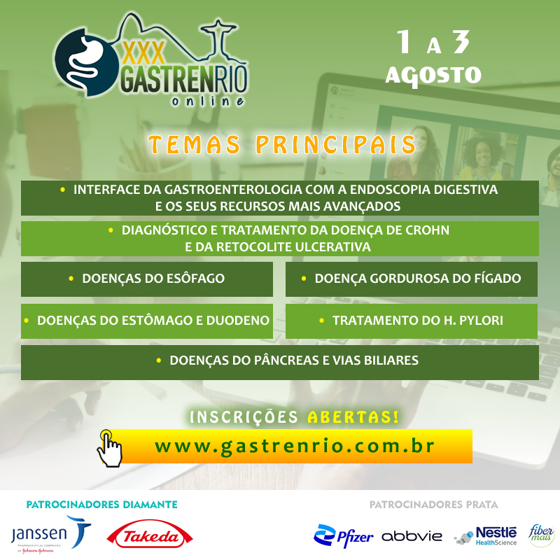 O XXX Gastren-Rio será realizado de forma online de 1º a 3 de agosto (domingo a terça-feira).