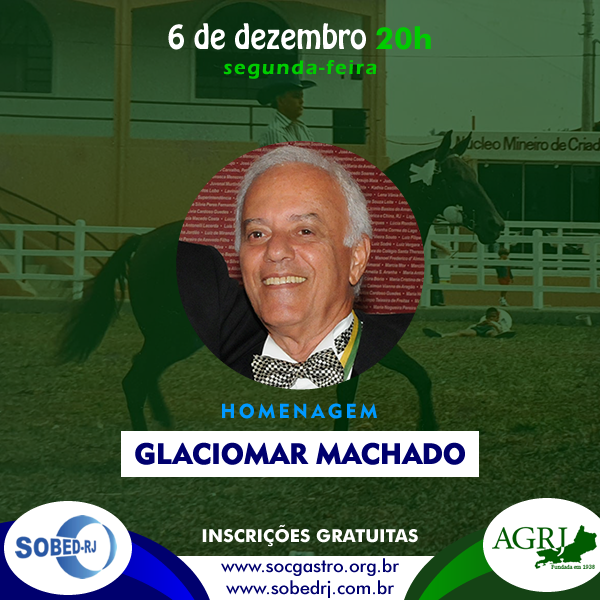 A AGRJ e a SOBED-RJ realizam nesta segunda-feira, dia 6 de dezembro, às 20h, sessão científica em conjunto para homenagear o Dr. Glaciomar Machado, um dos grandes nomes da Endoscopia Digestiva e da Gastroenterologia que faleceu em agosto desse ano.