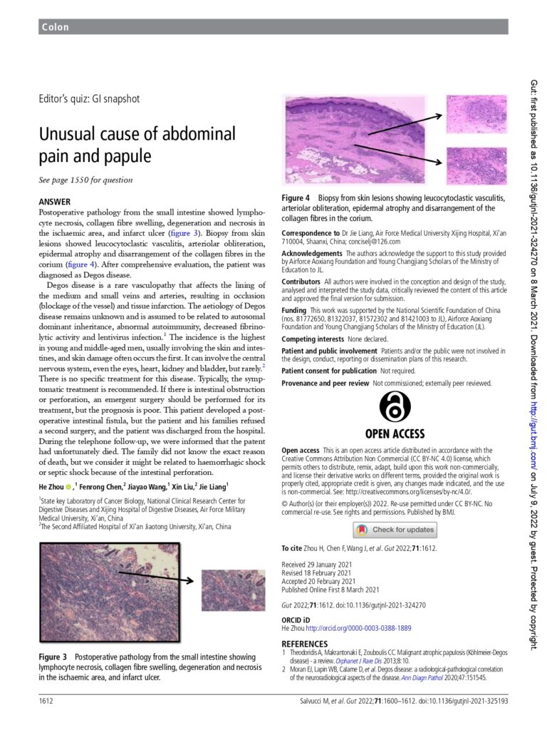 QUIZ: Causa incomum de dor abdominal e pápulas