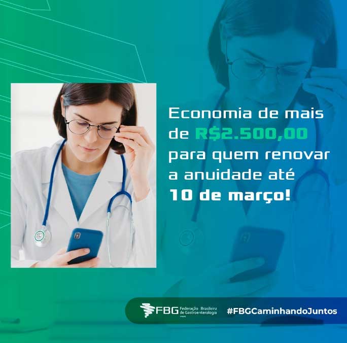 Não perca o desconto da anuidade, renove até o dia 10 de março, garanta seus benefícios e o seu lugar na missão de promover, inovar e elevar o conhecimento na área da Gastroenterologia.
