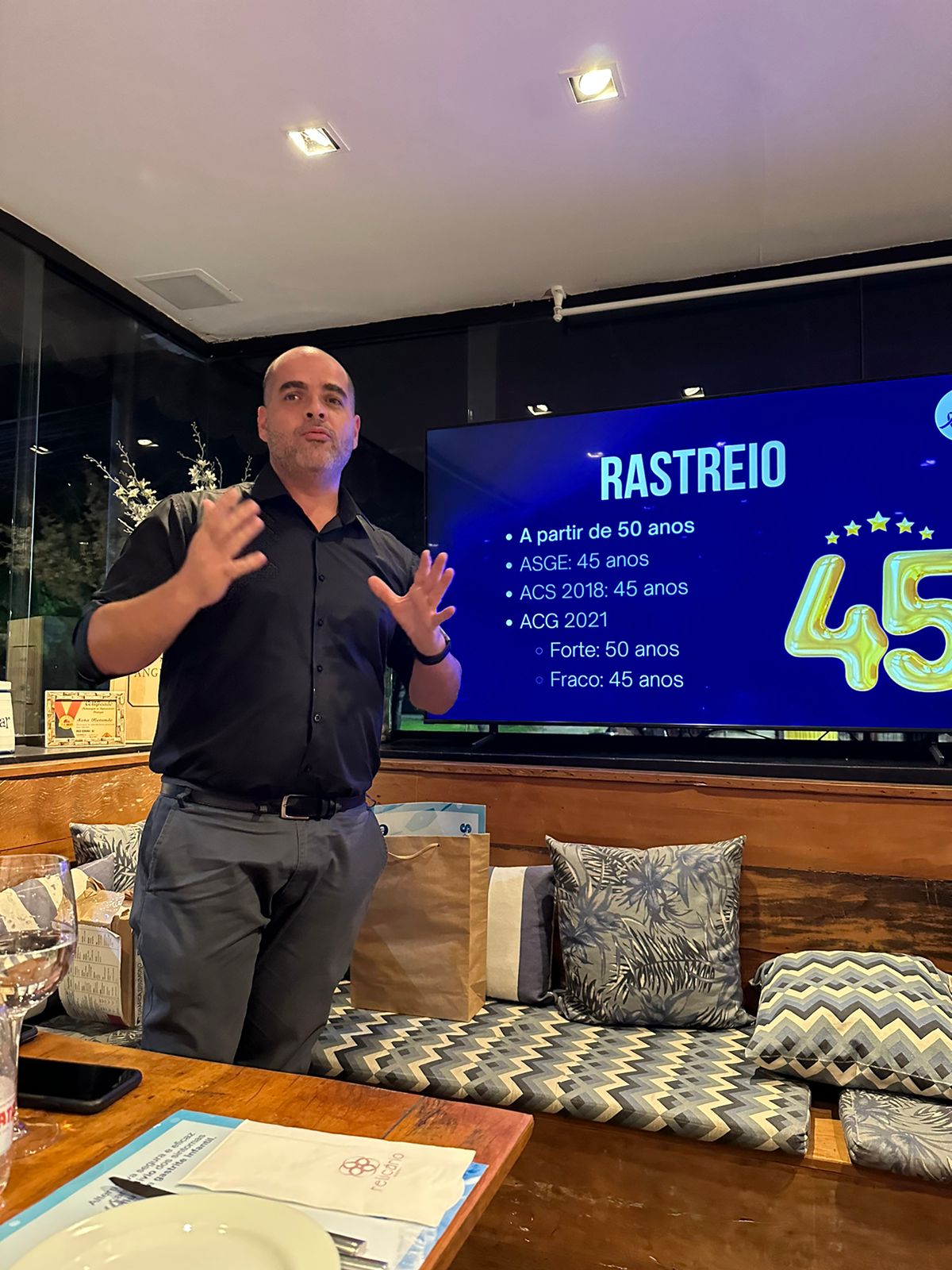 Nesta terça-feira, dia 28, o Capítulo Sul Fluminense da AGRJ realizou sua primeira reunião científica, após a posse da nova diretoria do capítulo. O evento, tendo em vista o Março Azul, foi realizado no restaurante Relicário e teve como tema Abordagem, Rastreamento e Prevenção do Câncer de Cólon. Visão do gastroenterologista, do oncologista e do cirurgião oncológico.