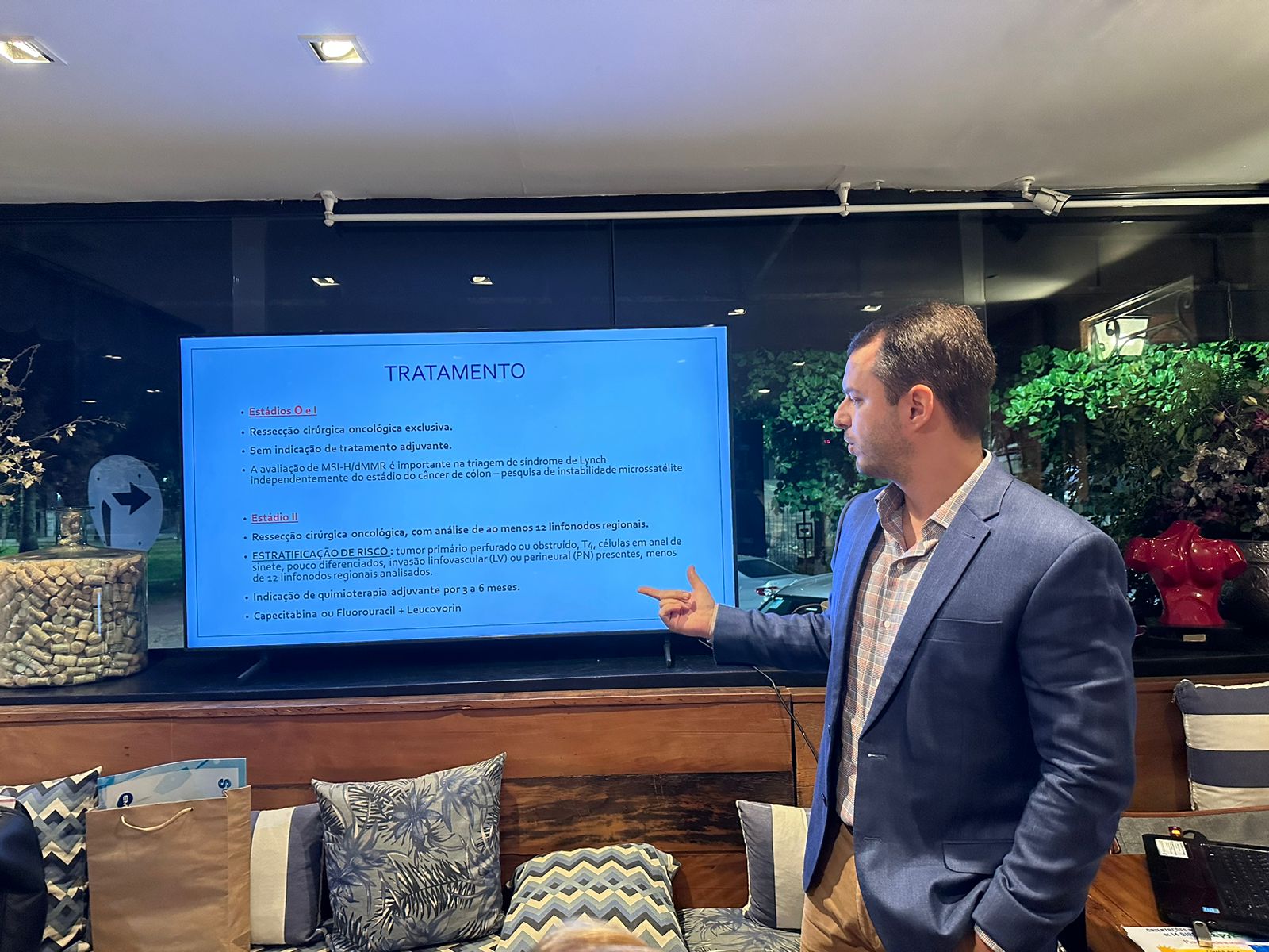 As palestras foram realizadas pelos Drs. Rodolfo Vasconcelos (visão do gastroenterologista), Rodrigo Leijoto (visão do oncologista) e Biazi Riciere (visão do cirurgião oncológico).