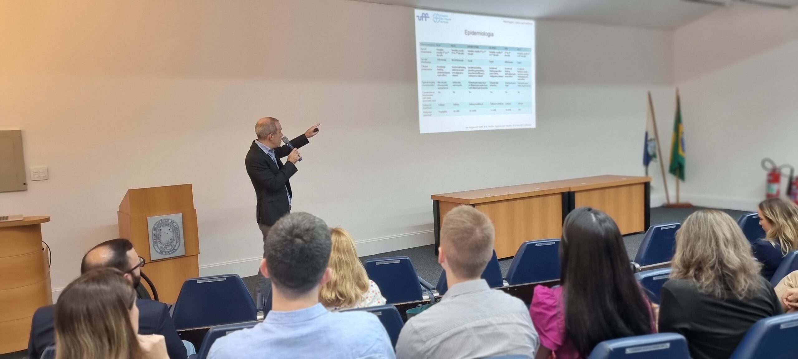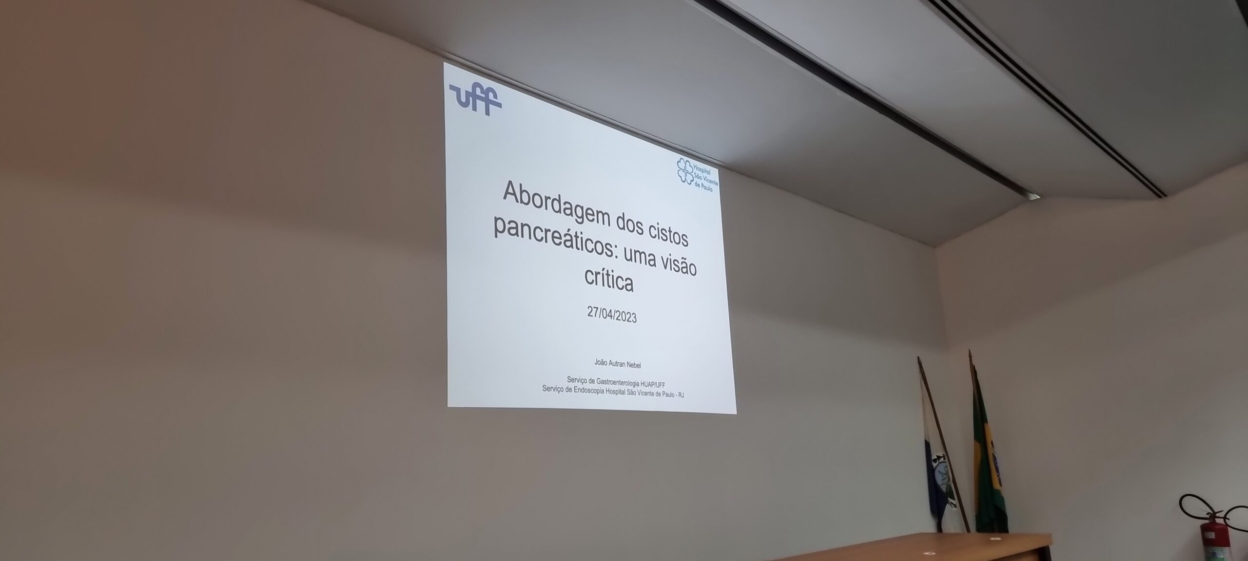 A palestra inicial do Prof. João Nebel, do Serviço de Gastroenterologia da Universidade Federal Fluminense, levantou o tema “A abordagem dos cistos pancreáticos: uma visão crítica”.