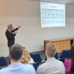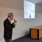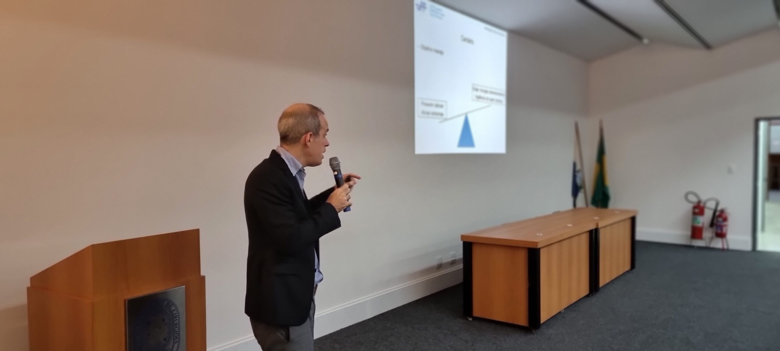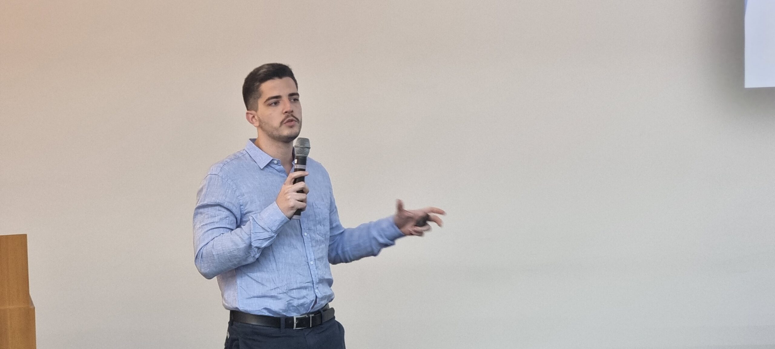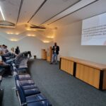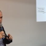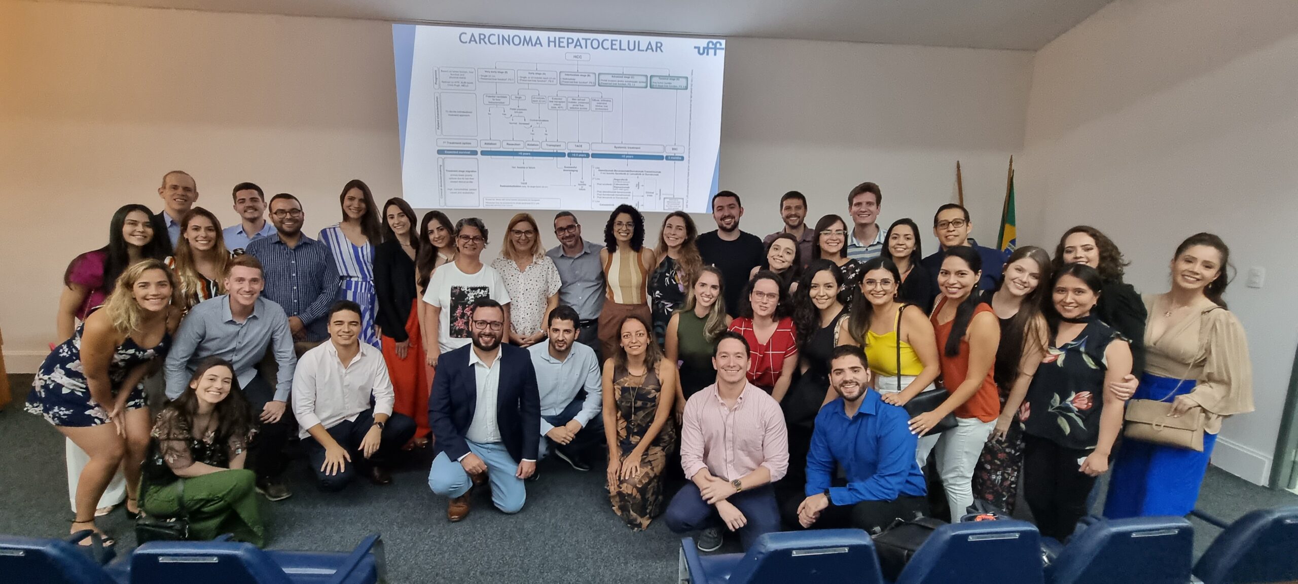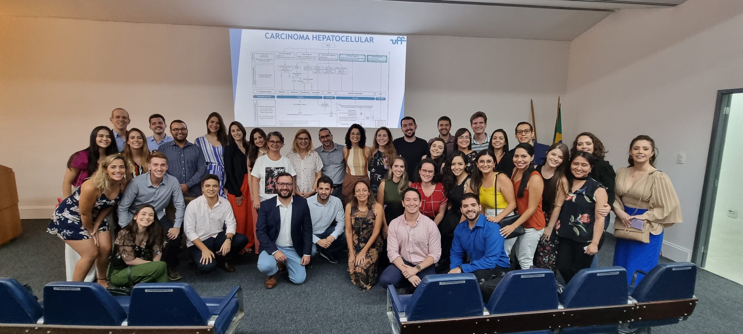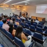 No retorno do coffee-break, o Dr. João Gabriel Magalhães Bertazo Silveira, residente de Gastroenterologia do Hospital Universitário Antônio Pedro (UFF), ministrou a última apresentação sobre “A concomitância do câncer de cólon e CHC no paciente cirrótico, direcionando o tratamento”. A orientadora foi a Dra. Cassia Regina Guedes Leal.