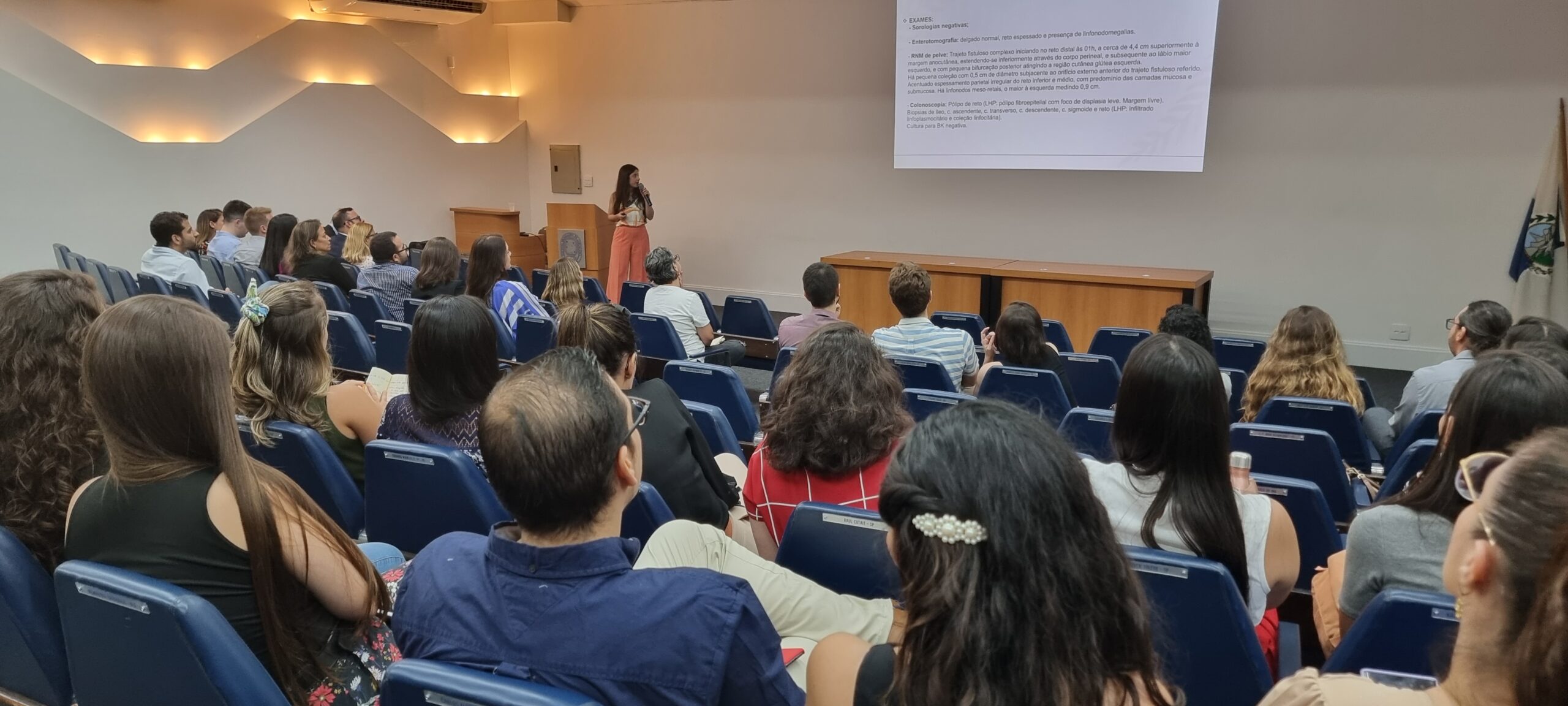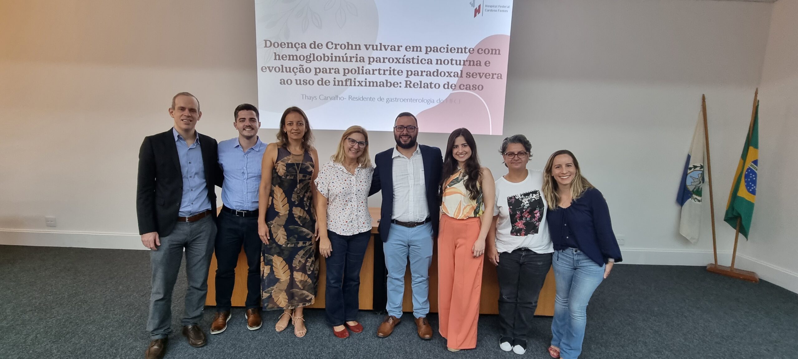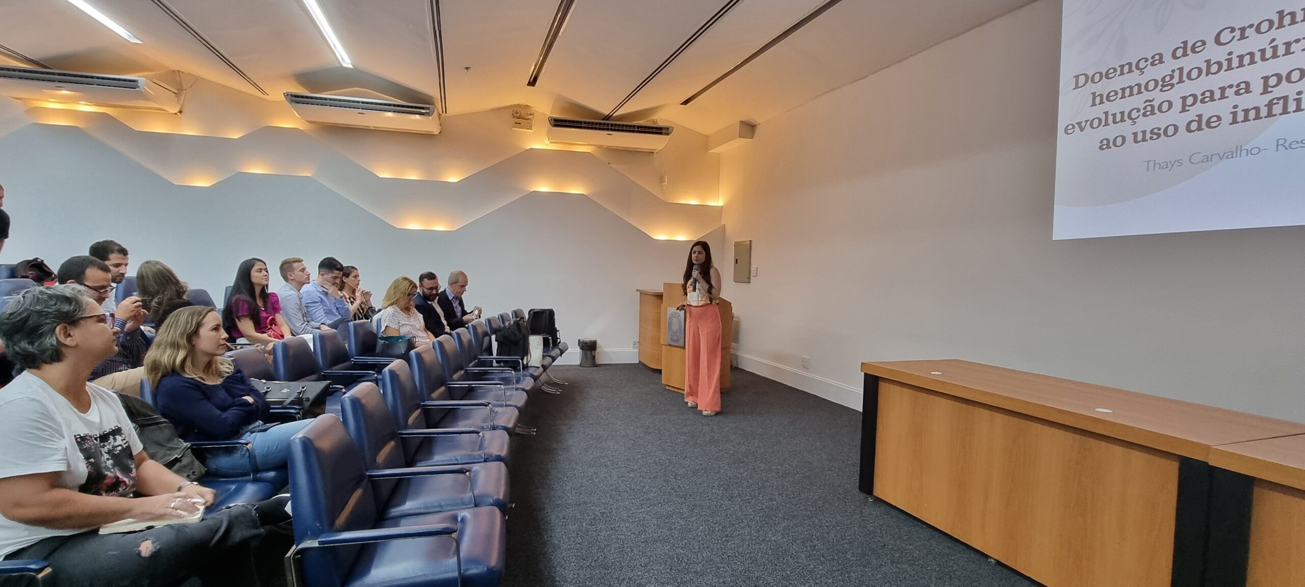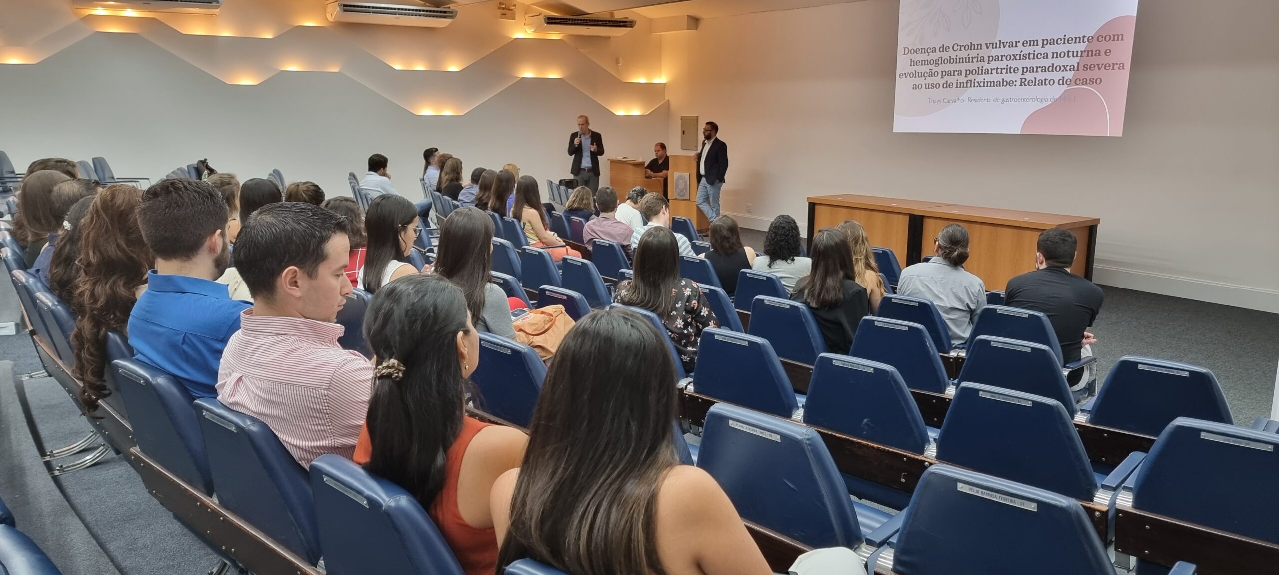 Na sequência, a Dra. Thays Carvalho, residente de Gastroenterologia do Hospital Federal Cardoso Fontes, falou sobre “Doença de crohn vulvar em paciente com hemoglobinúria paroxística noturna e evolução para poliartrite paradoxal severa ao uso de infliximabe: relato de caso”. A orientadora foi a Dra. Rosana da Silva Ciuffo.