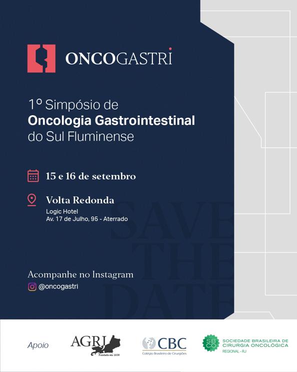 O 1º Simpósio de Oncologia Gastrointestinal do Sul Fluminense será realizado nos dias 15 e 16 de setembro, no Logic Hotel, em Volta Redonda.