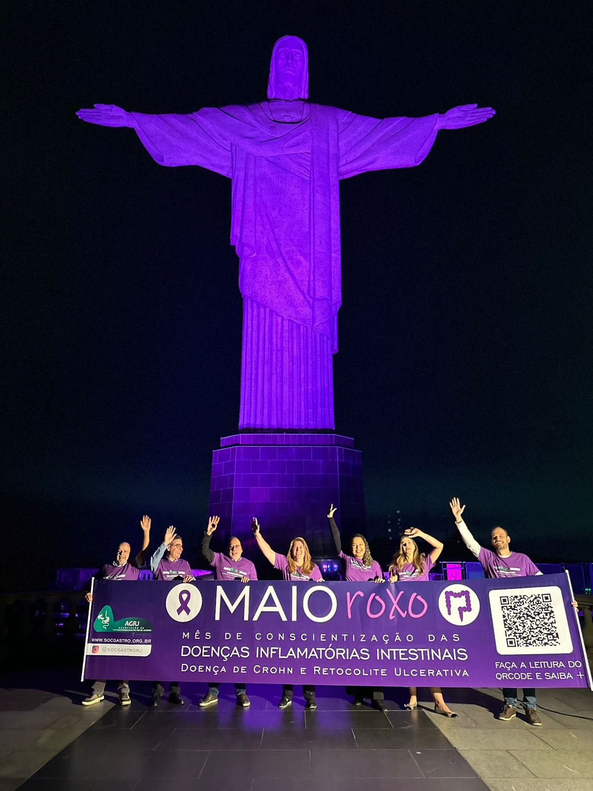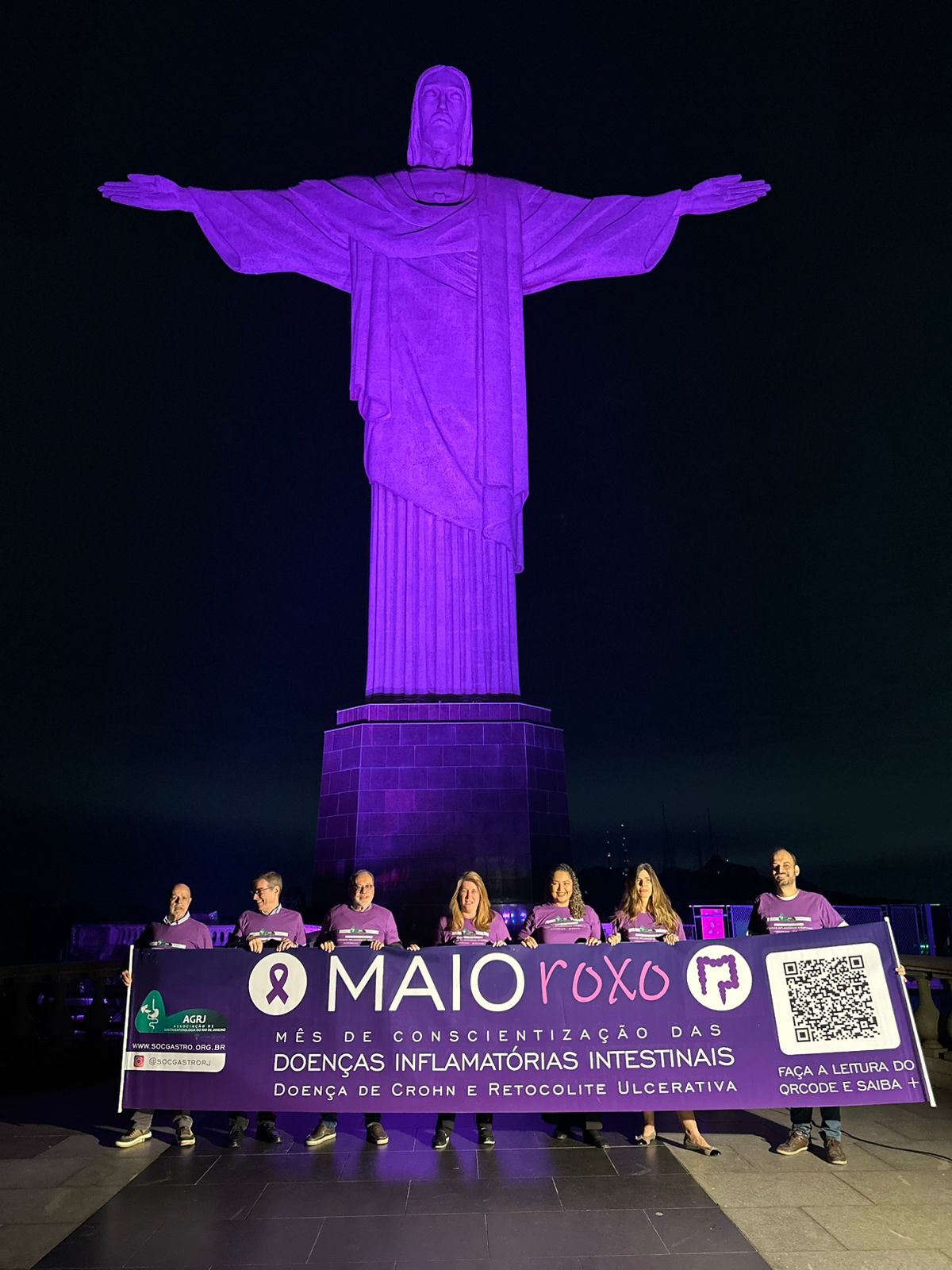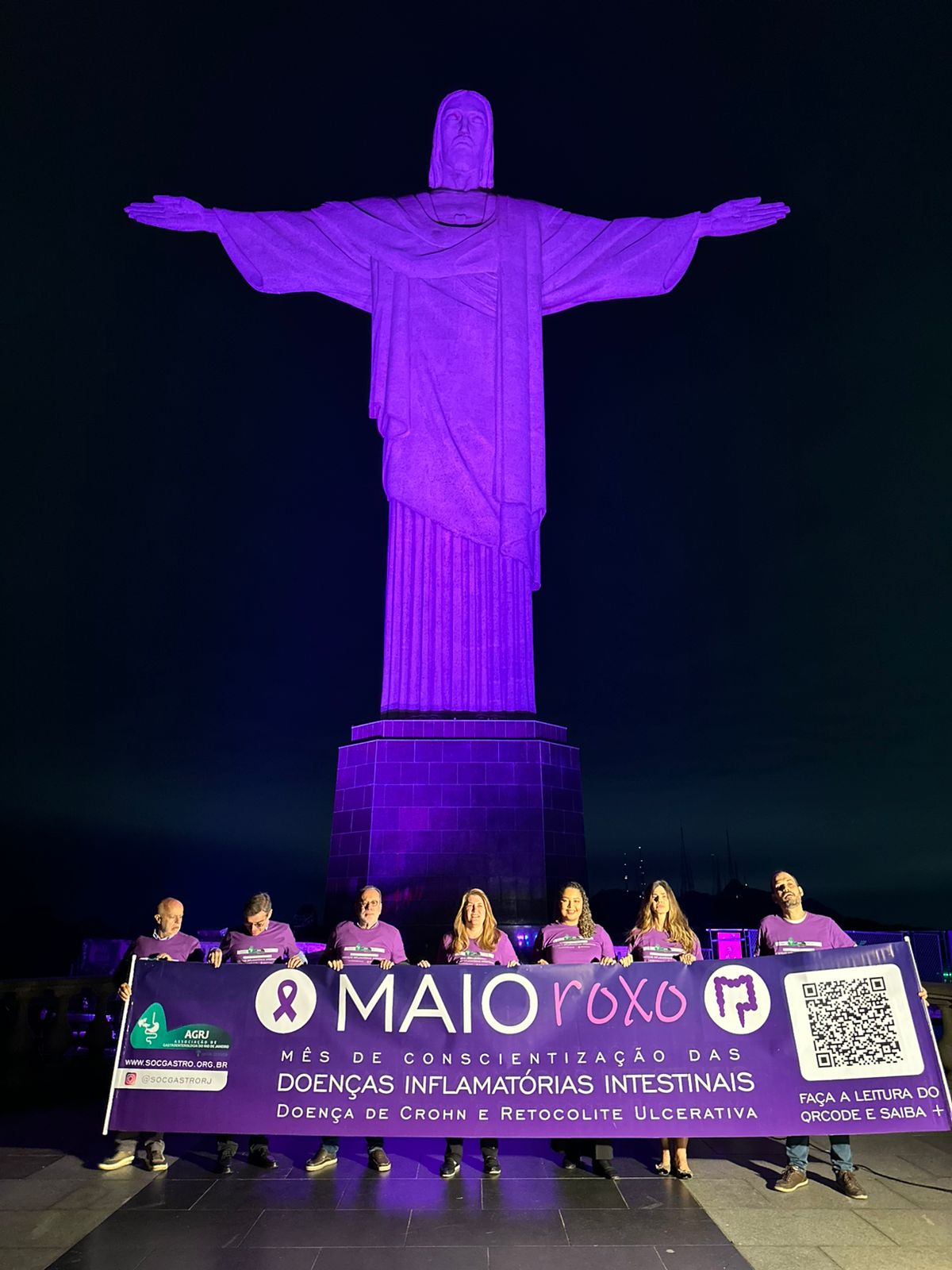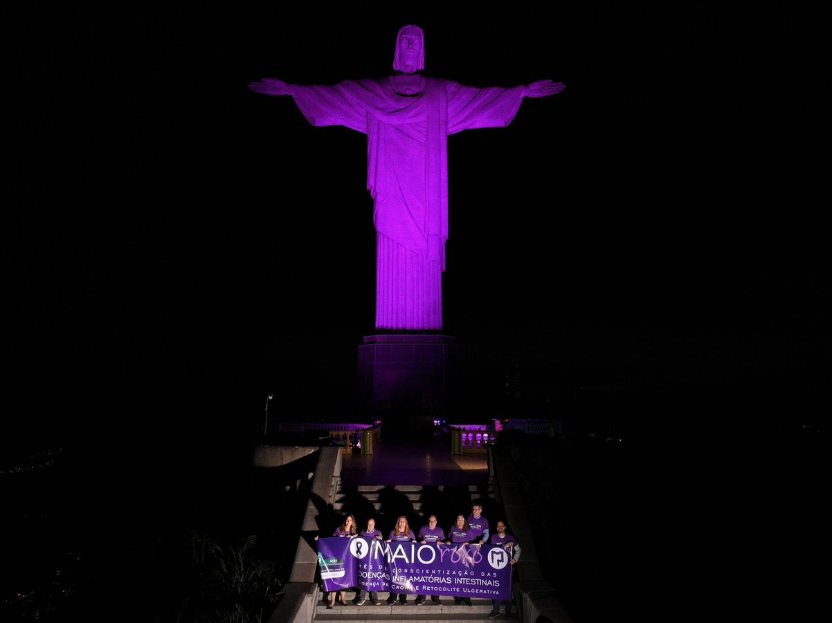 Em mais uma ação em prol do mês de conscientização das Doenças Inflamatórias Intestinais, a AGRJ subiu o Cristo, iluminou o monumento de roxo e promoveu mais visibilidade ainda a nossa campanha.