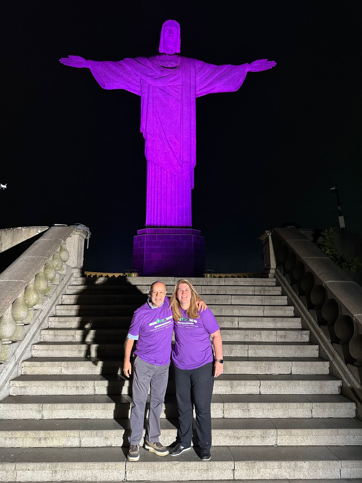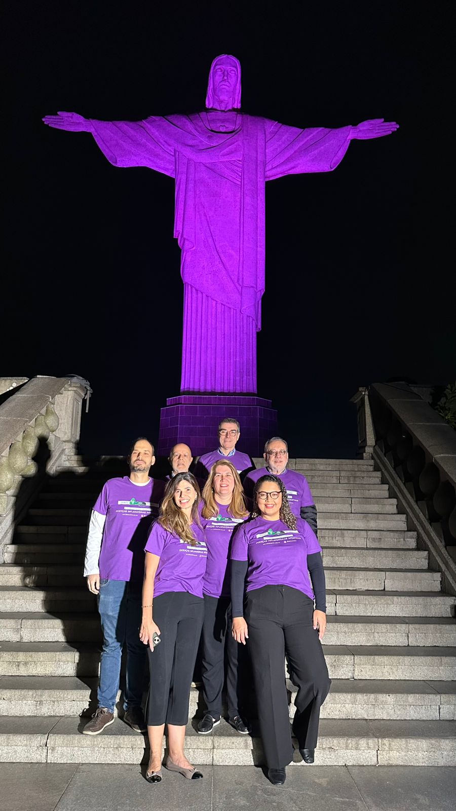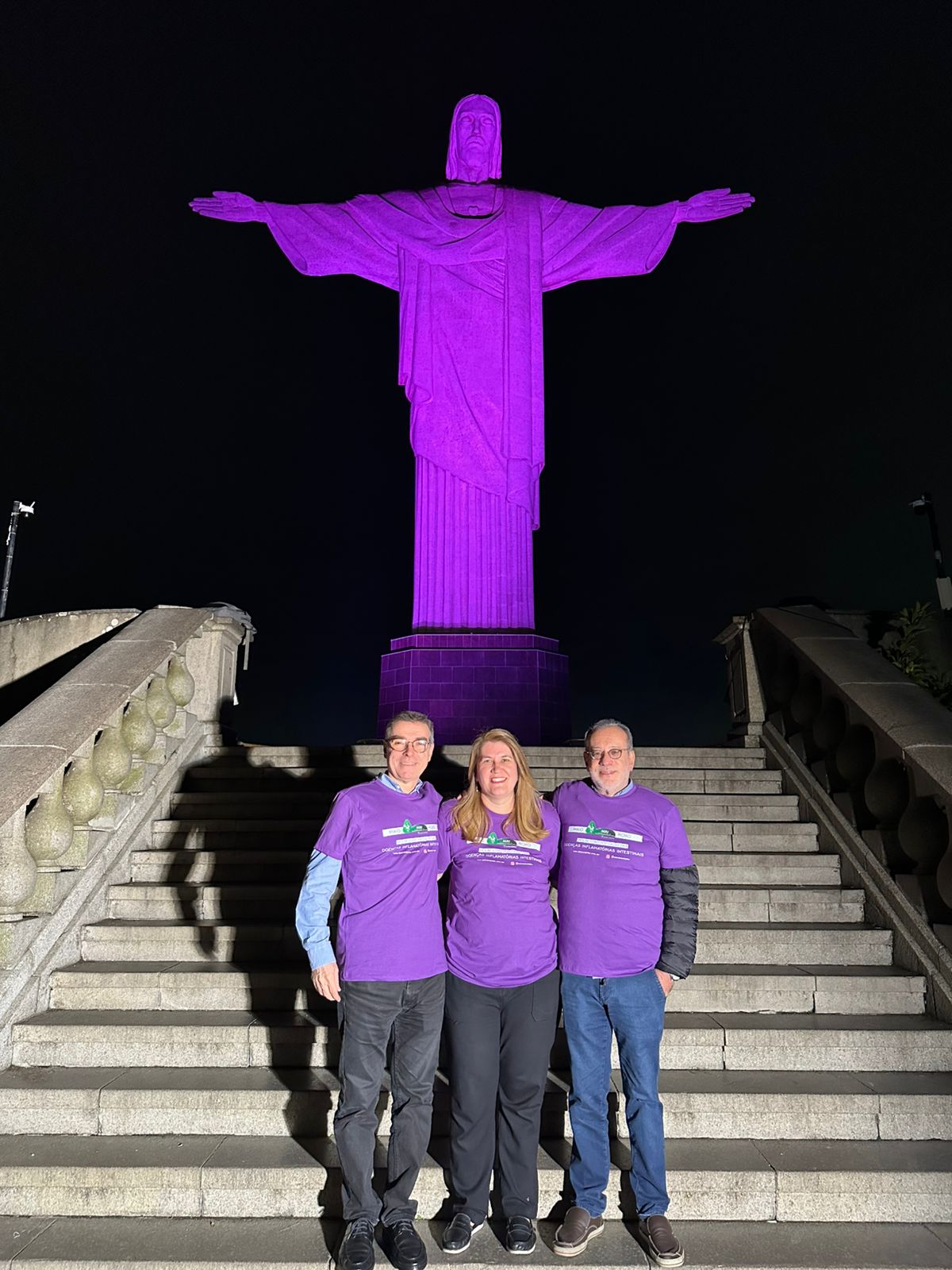 Em mais uma ação em prol do mês de conscientização das Doenças Inflamatórias Intestinais, a AGRJ subiu o Cristo, iluminou o monumento de roxo e promoveu mais visibilidade ainda a nossa campanha.