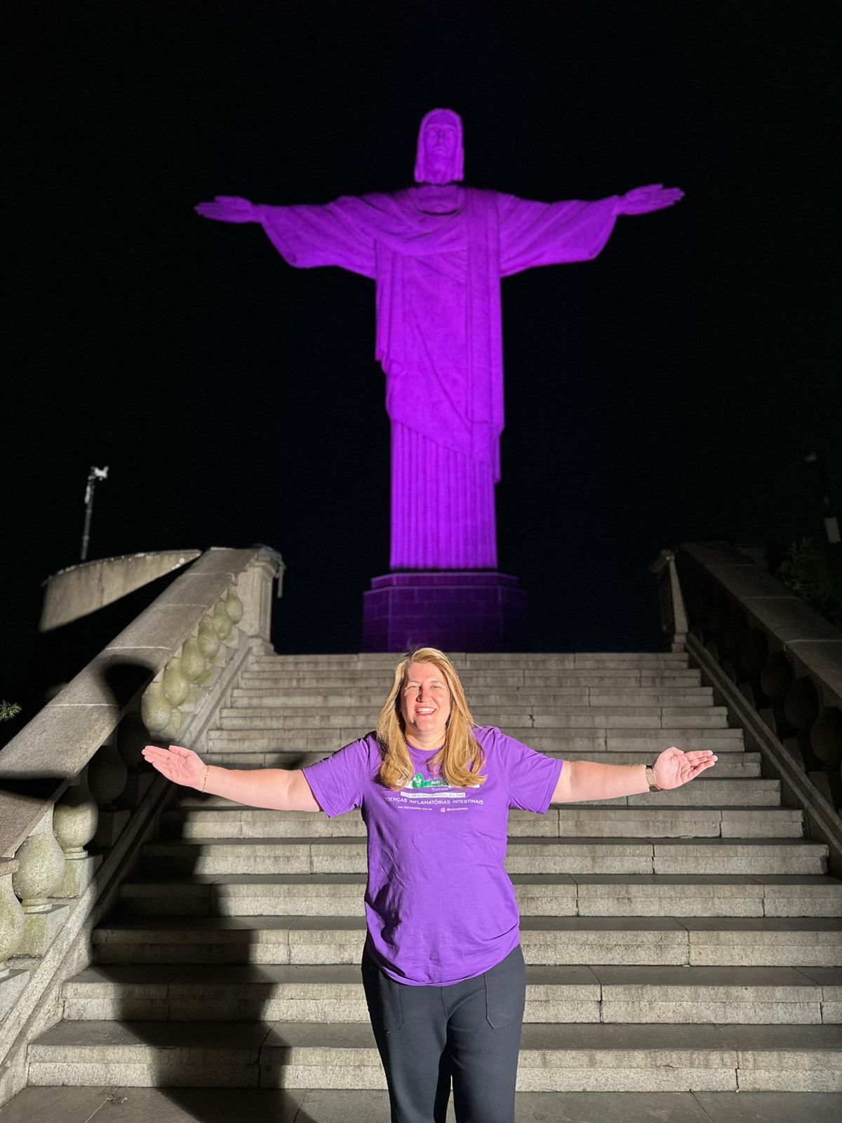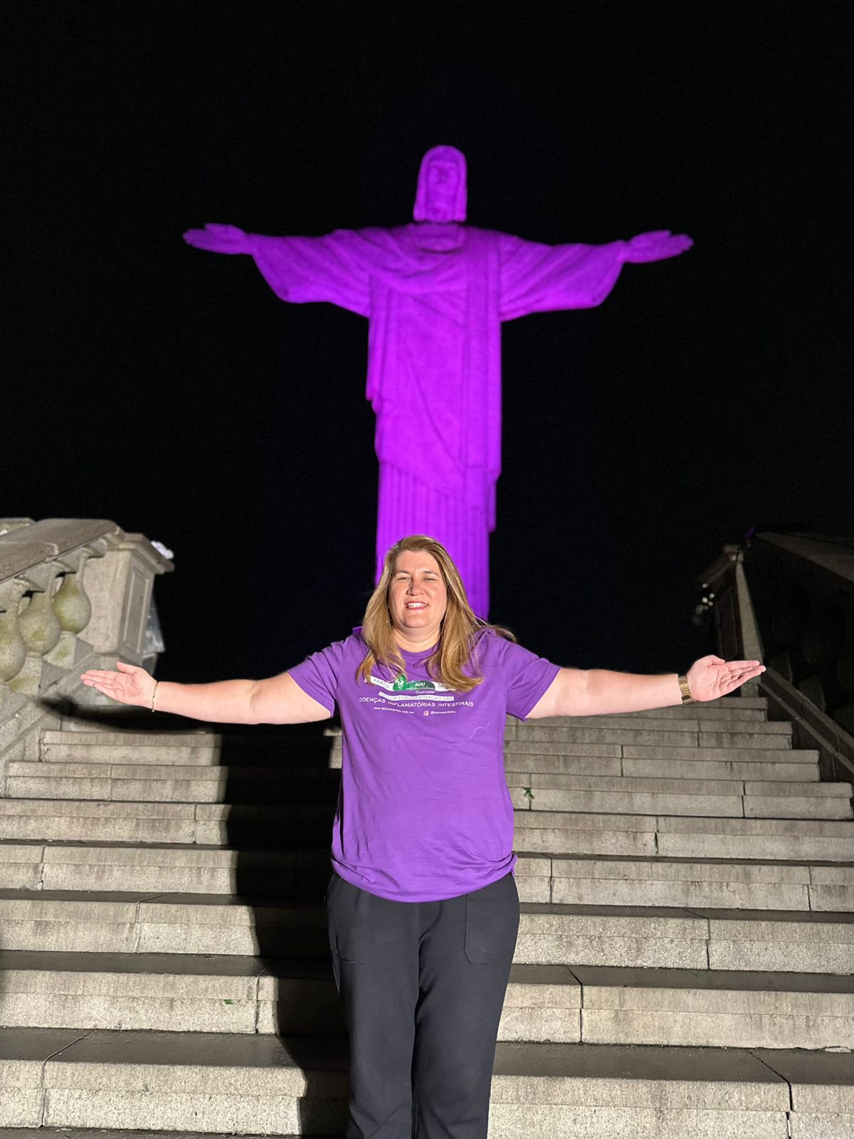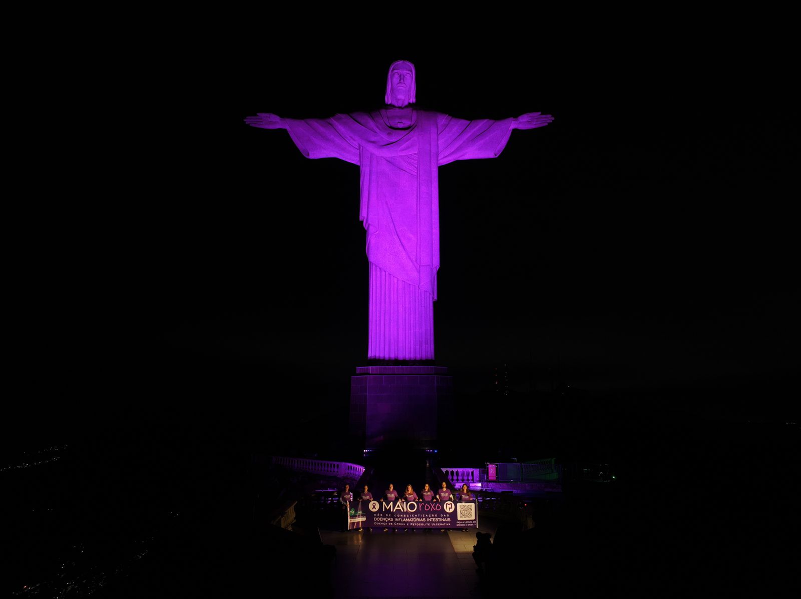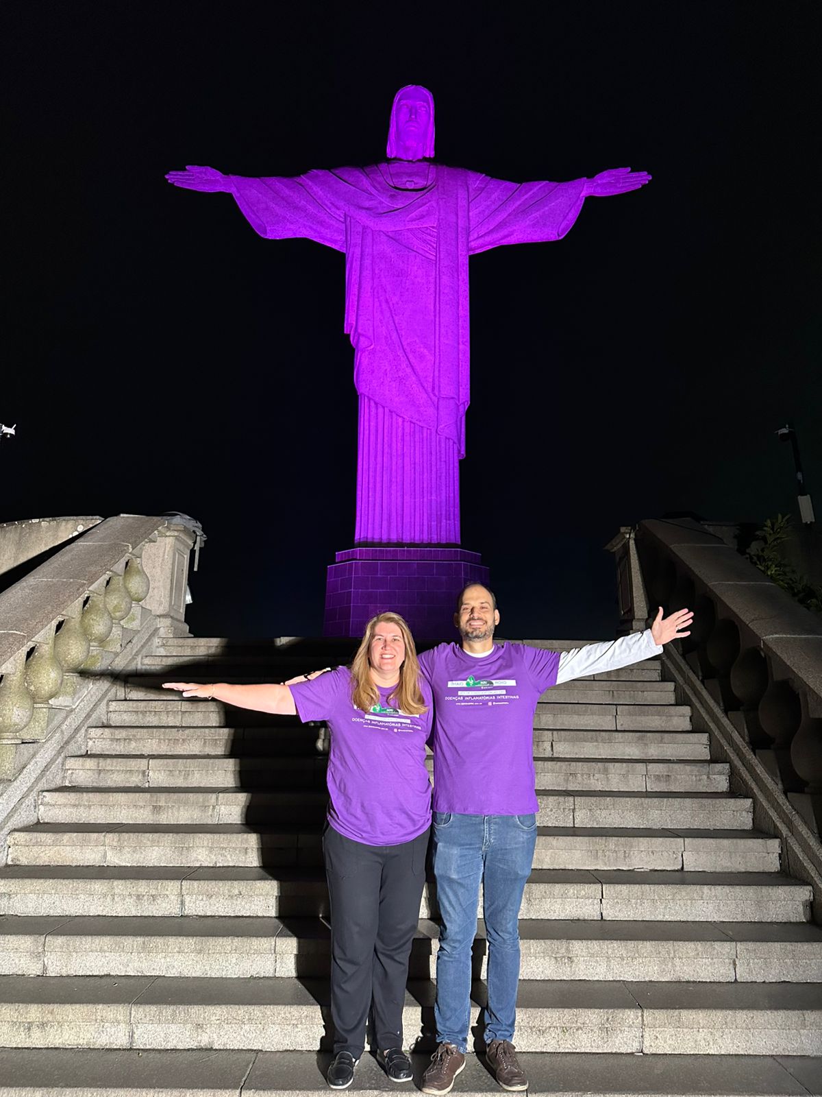 Em mais uma ação em prol do mês de conscientização das Doenças Inflamatórias Intestinais, a AGRJ subiu o Cristo, iluminou o monumento de roxo e promoveu mais visibilidade ainda a nossa campanha.