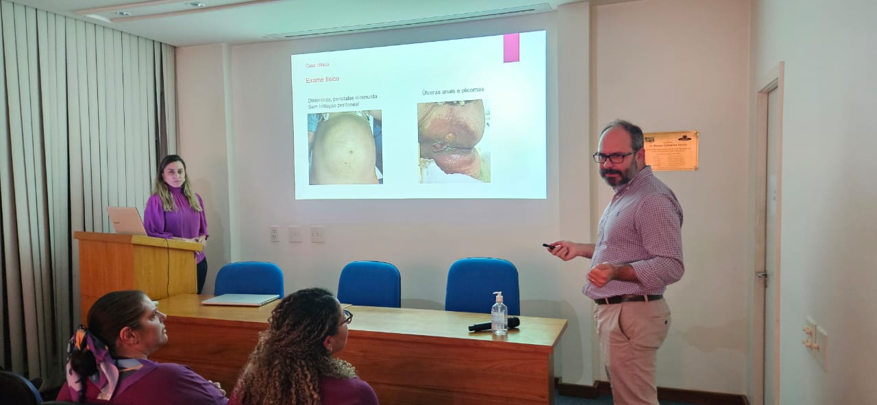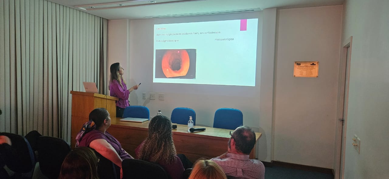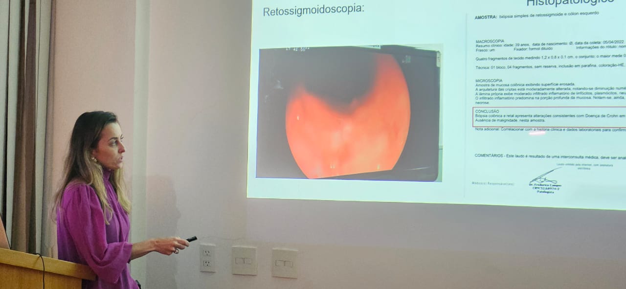 O evento foi aberto pelos presidentes das sociedades, Renata Fróes (AGRJ) e Leonardo Castro (SOBRACIL-RJ), dando as boas-vindas aos presentes e na sequência as Dras. Renata Amorim e Mariana Maiolino apresentaram casos de Doença Inflamatória Intestinal de difícil manejo clínico e cirúrgico, que promoveram amplo debate dentre os presentes.