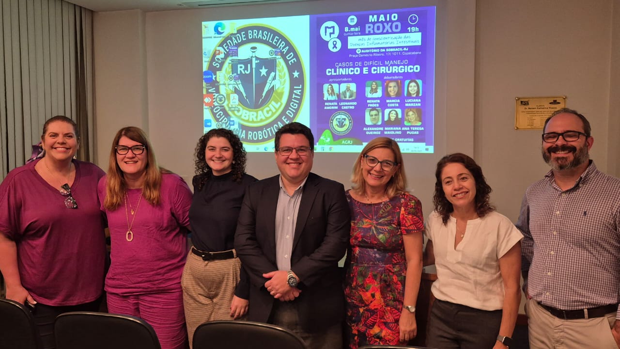 A Associação de Gastroenterologia do Rio de Janeiro e a Sociedade Brasileira de Videocirurgia, Robótica e Digital – Capítulo Rio de Janeiro realizaram na noite desta quinta-feira, dia 8, em Copacabana, reunião científica em conjunto em homenagem ao Maio Roxo (mês de conscientização das Doenças Inflamatórias Intestinais).