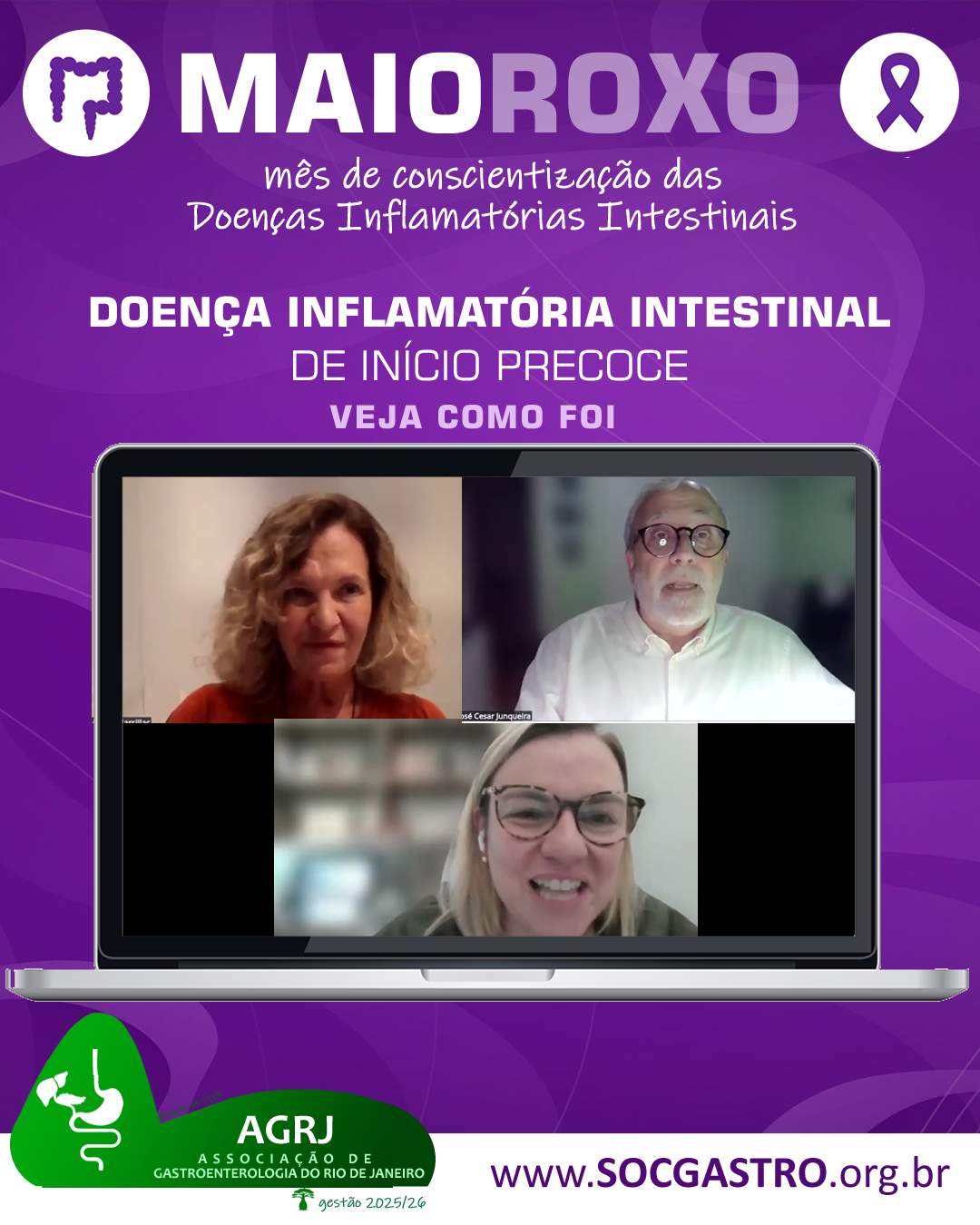 Cerca de 30 pessoas participaram, na noite desta quarta-feira, dia 28, de webinar da AGRJ que teve como tema Doença Inflamatória Intestinal de início precoce: discussão de casos clínicos de Pediatria.